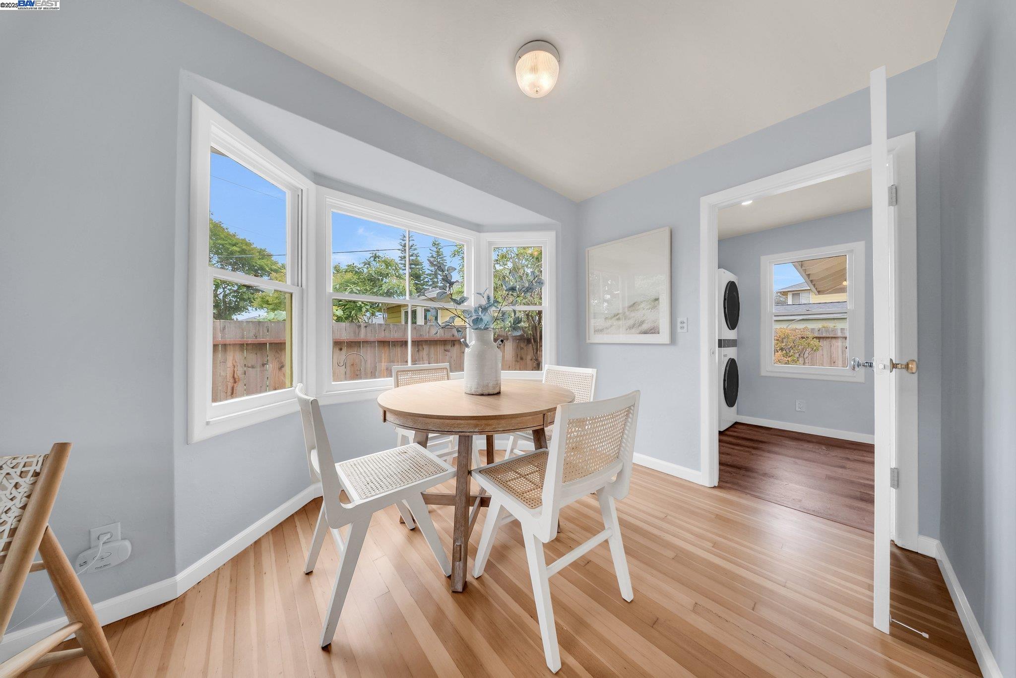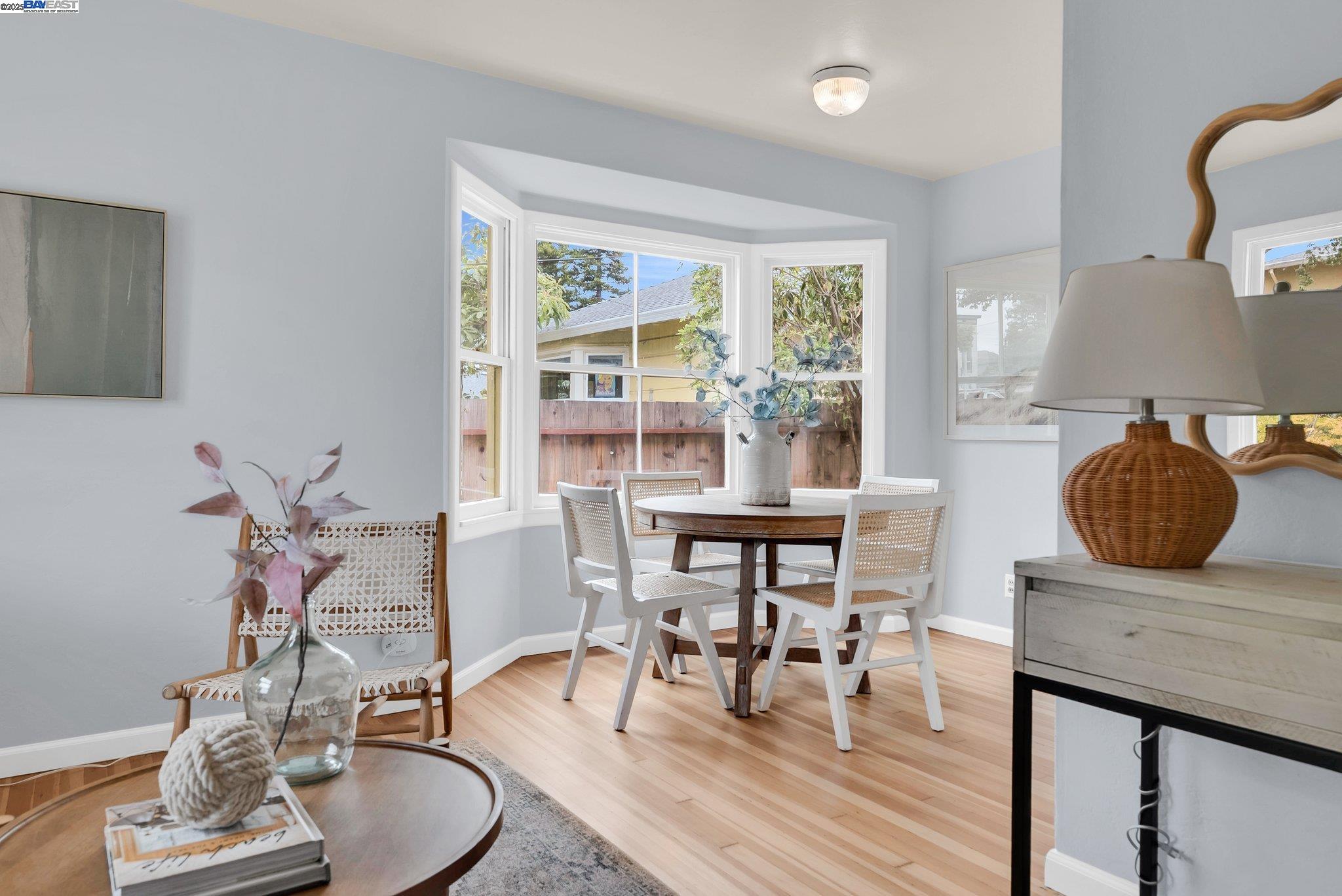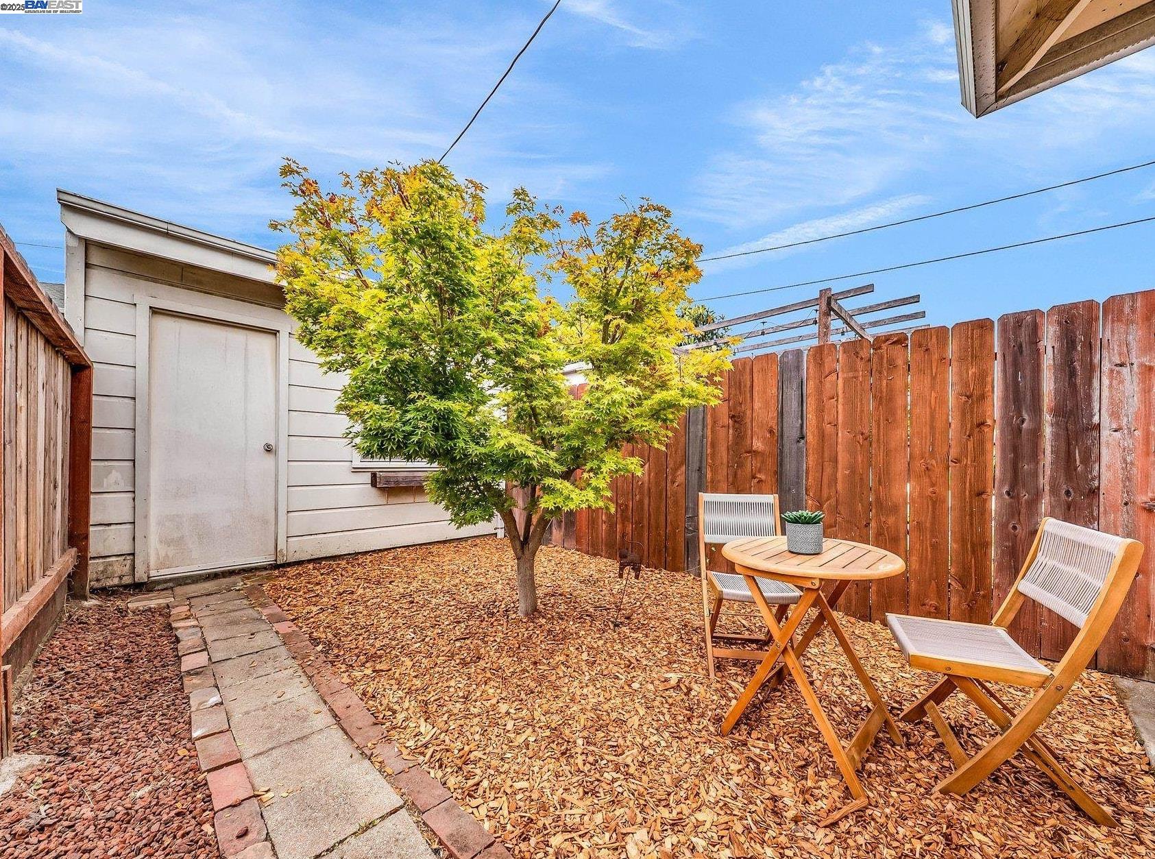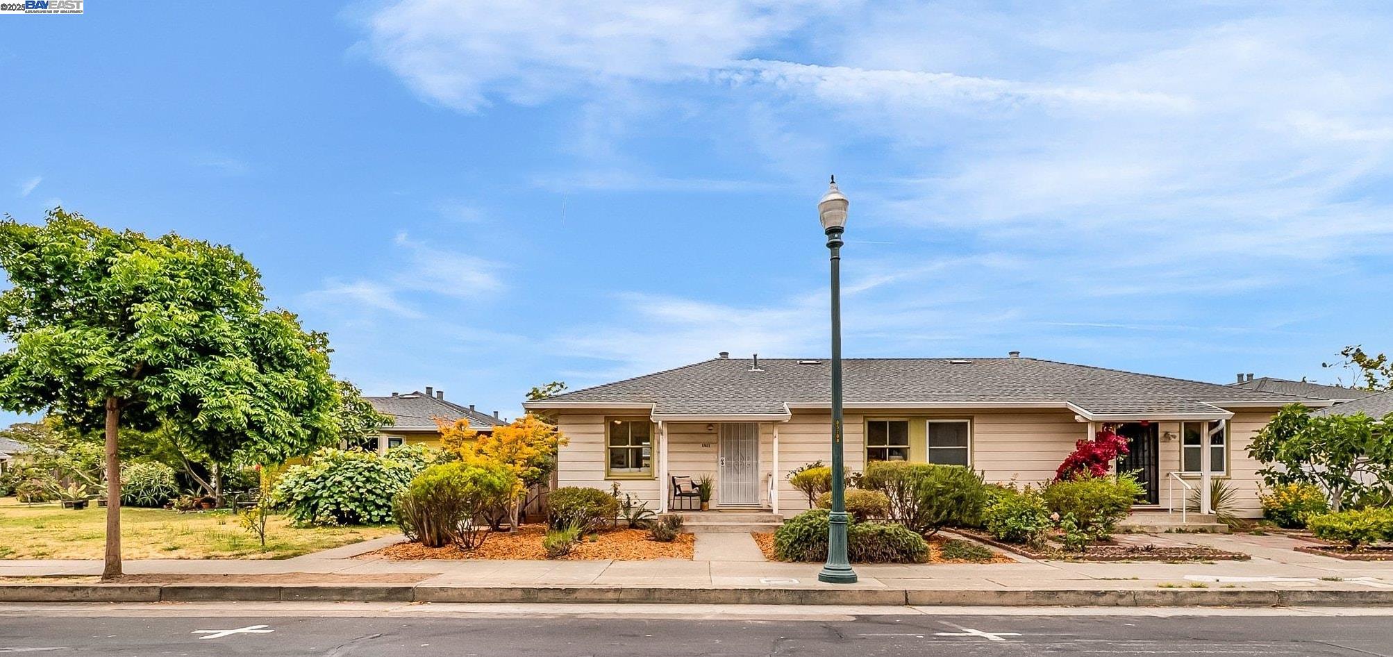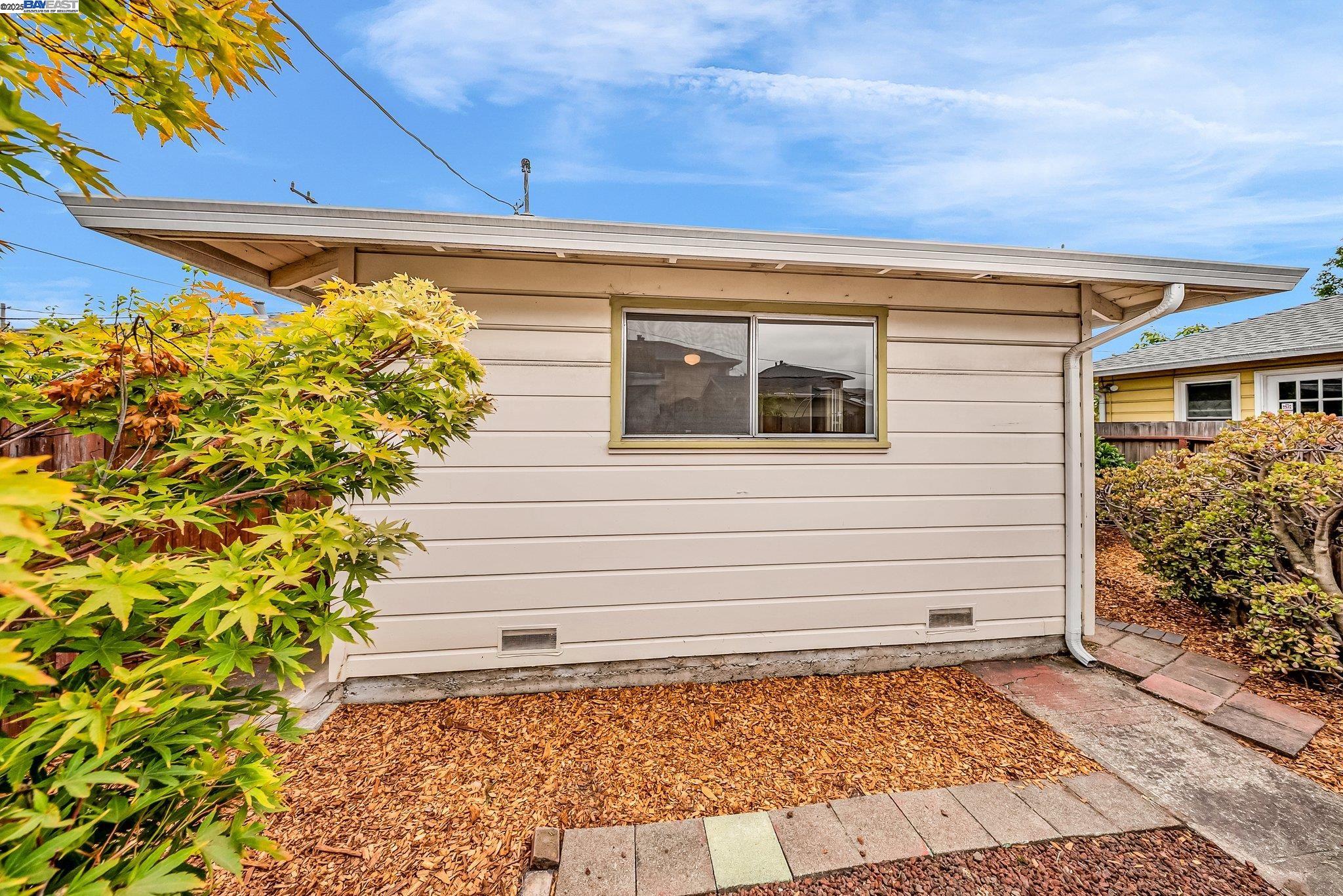 Welcome to Alameda's charming Island lifestyle with this unique 2+-bedroom, 1-bath 1940s duet cottage. Offering 1006 sq ft including a spacious 255 sq ft bonus family room, this home is nestled in the friendly Woodstock Homes cooperative community. Only blocks to the San Francisco Bay, trails and Encinal boat ramp with an 18 min crossing to San Francisco via the Seaplane Lagoon Ferry. Discover the charm of original refinished fir floors, wood windows, antique light fixtures and brass door knobs. The southern-facing bay window floods the dining area with natural light, creating a perfect dining experience. The private fenced yard, featuring a patio and lemon tree, provides peaceful outdoor space, while an electrified shed offers versatile use as an art studio or office. Recent upgrades include a beautifully remodeled kitchen with in-unit washer/dryer. Besides street parking, there is off-street parking for two cars in private parking wells, guest parking and an optional private detached garage available for rent. Enjoy proximity to dining and shopping at the Webster commercial district and Alameda Landing, or take the Woodstock estuary crossing water taxi to Jack London Square. This home perfectly blends historic charm with modern amenities in a prime West End Alameda location.