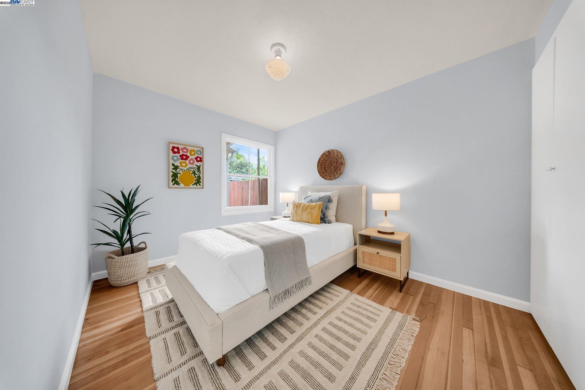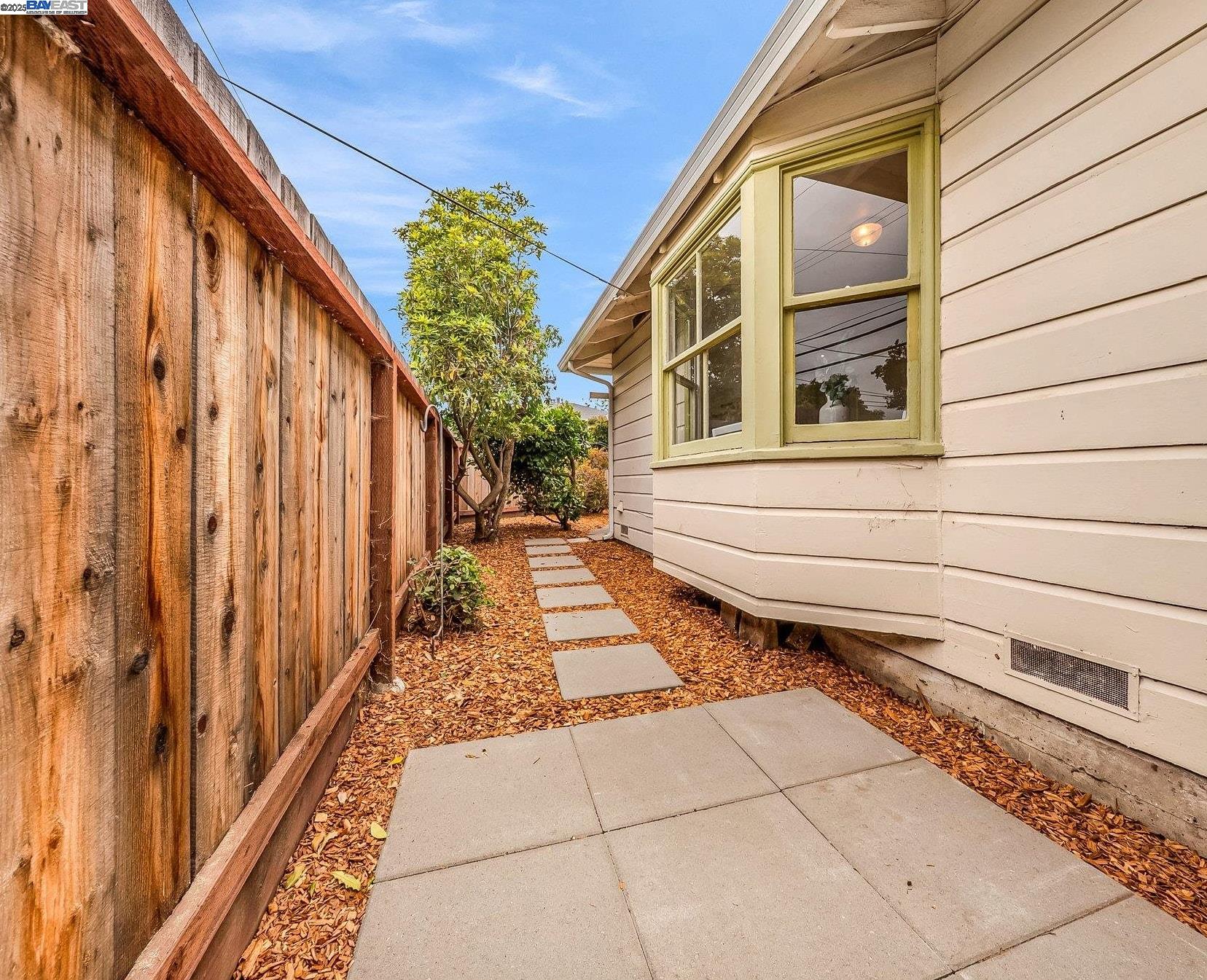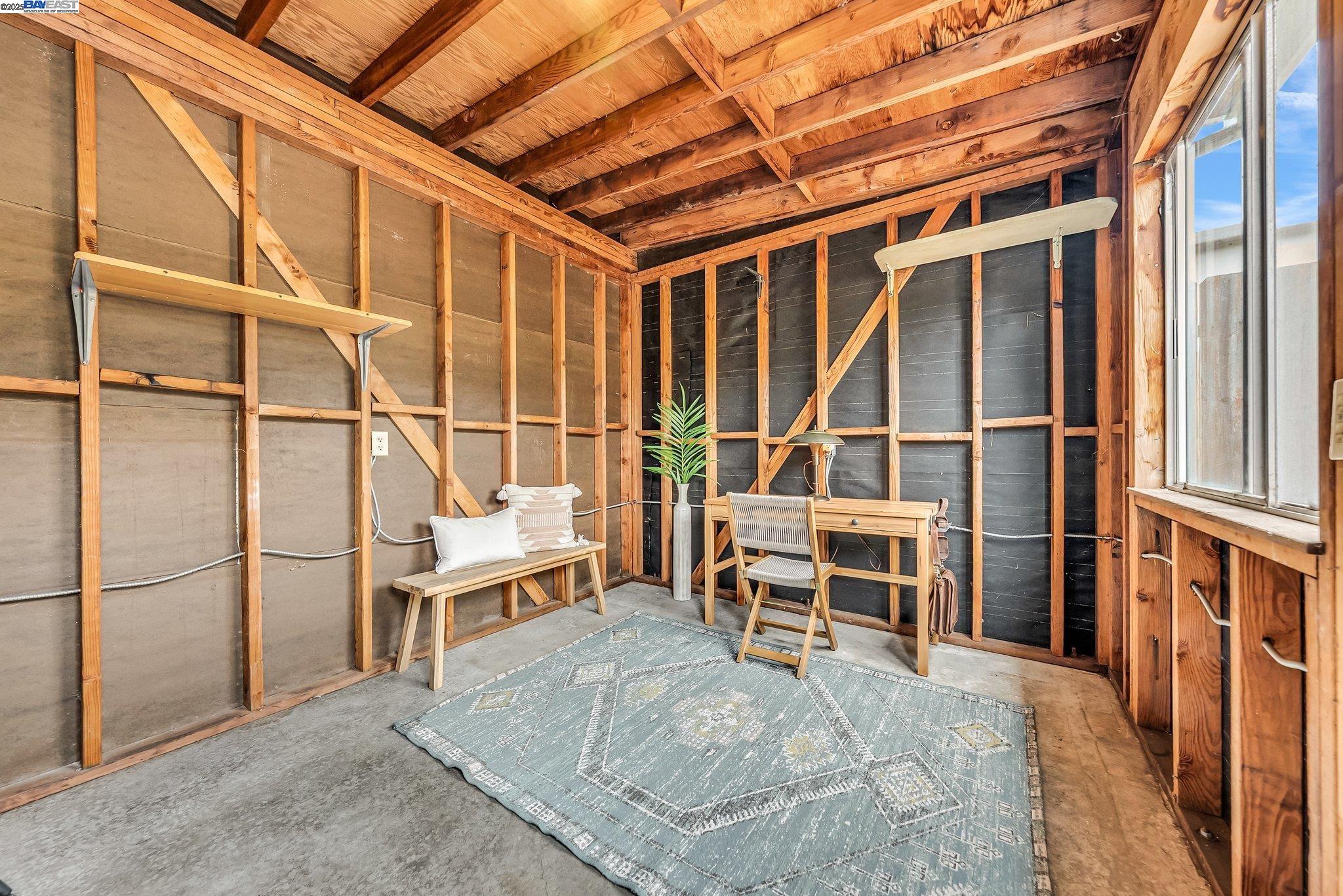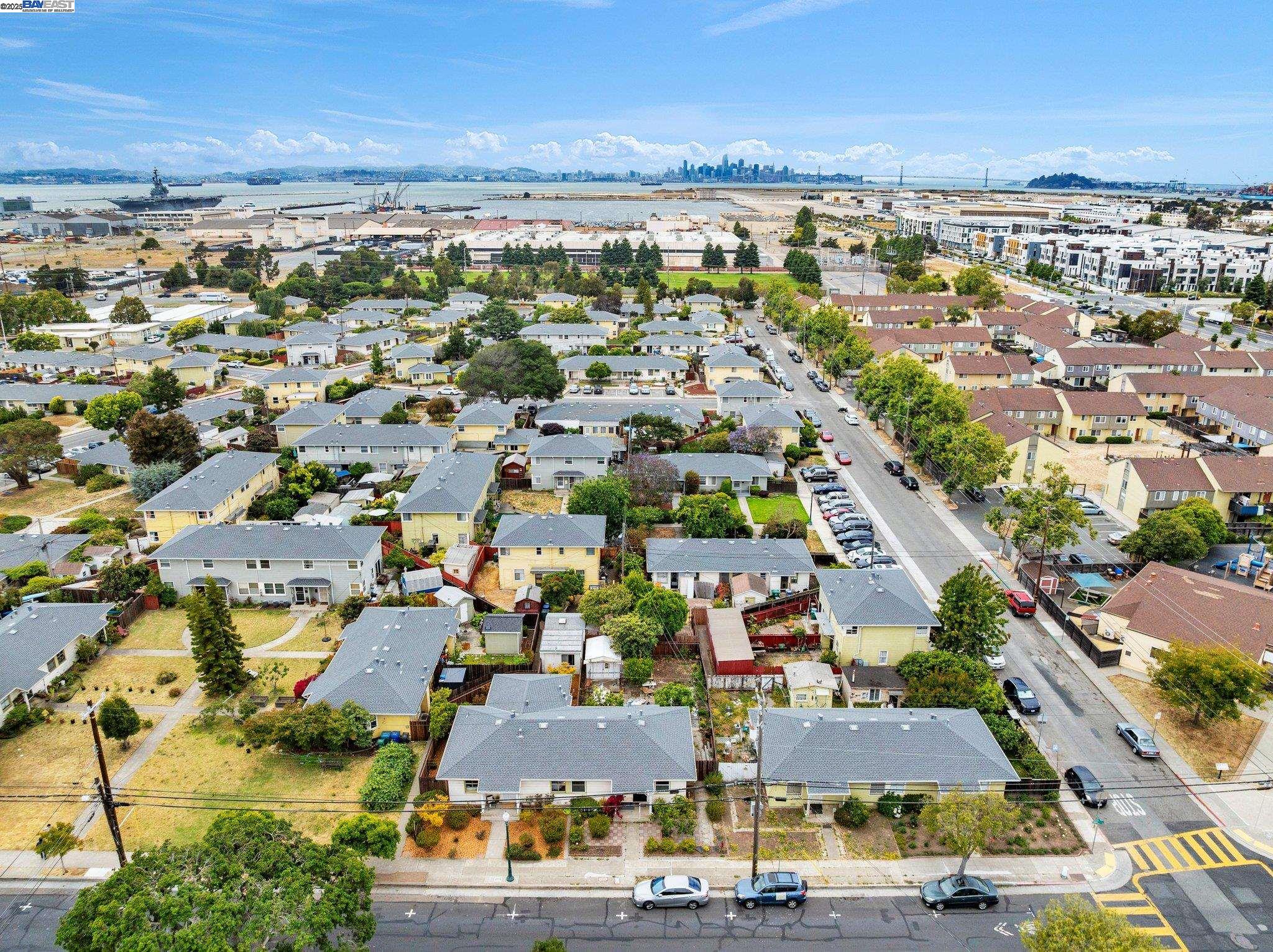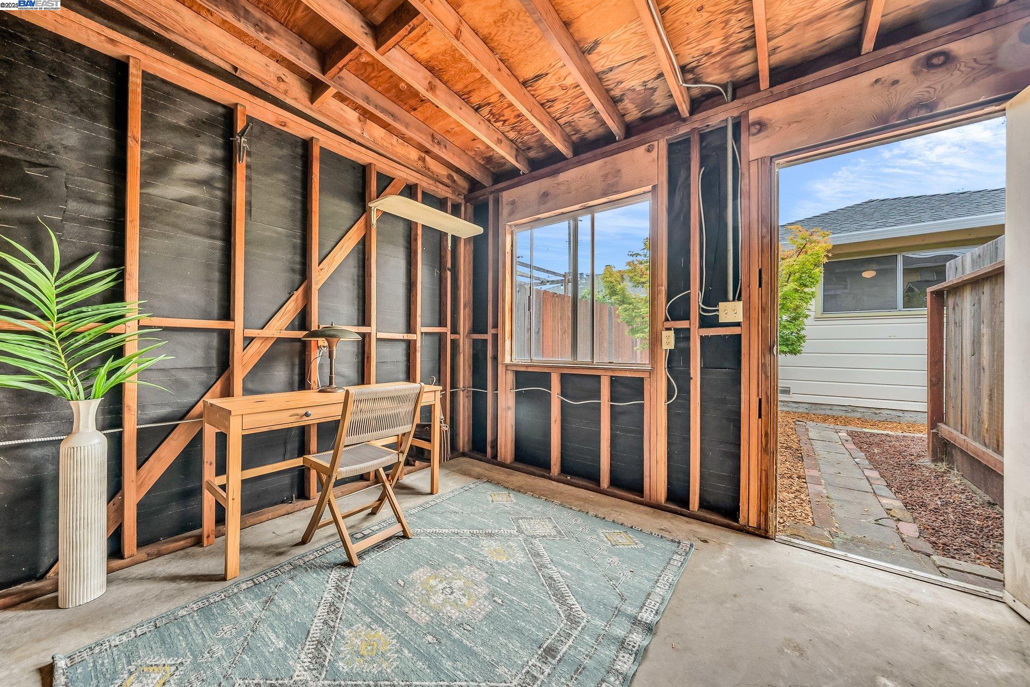 Welcome to Alameda's charming Island lifestyle with this unique 2+-bedroom, 1-bath 1940s duet cottage. Offering 1006 sq ft including a spacious 255 sq ft bonus family room, this home is nestled in the friendly Woodstock Homes cooperative community. Only blocks to the San Francisco Bay, trails and Encinal boat ramp with an 18 min crossing to San Francisco via the Seaplane Lagoon Ferry. Discover the charm of original refinished fir floors, wood windows, antique light fixtures and brass door knobs. The southern-facing bay window floods the dining area with natural light, creating a perfect dining experience. The private fenced yard, featuring a patio and lemon tree, provides peaceful outdoor space, while an electrified shed offers versatile use as an art studio or office. Recent upgrades include a beautifully remodeled kitchen with in-unit washer/dryer. Besides street parking, there is off-street parking for two cars in private parking wells, guest parking and an optional private detached garage available for rent. Enjoy proximity to dining and shopping at the Webster commercial district and Alameda Landing, or take the Woodstock estuary crossing water taxi to Jack London Square. This home perfectly blends historic charm with modern amenities in a prime West End Alameda location.