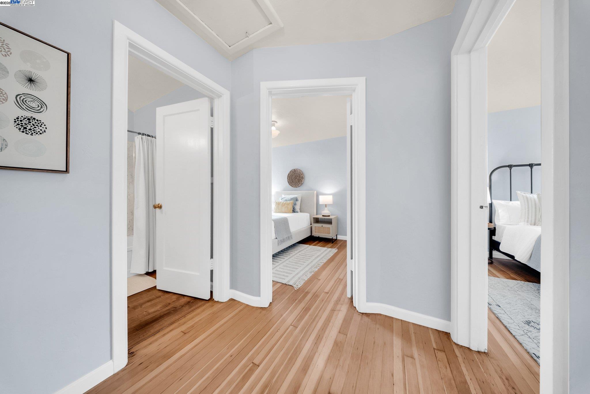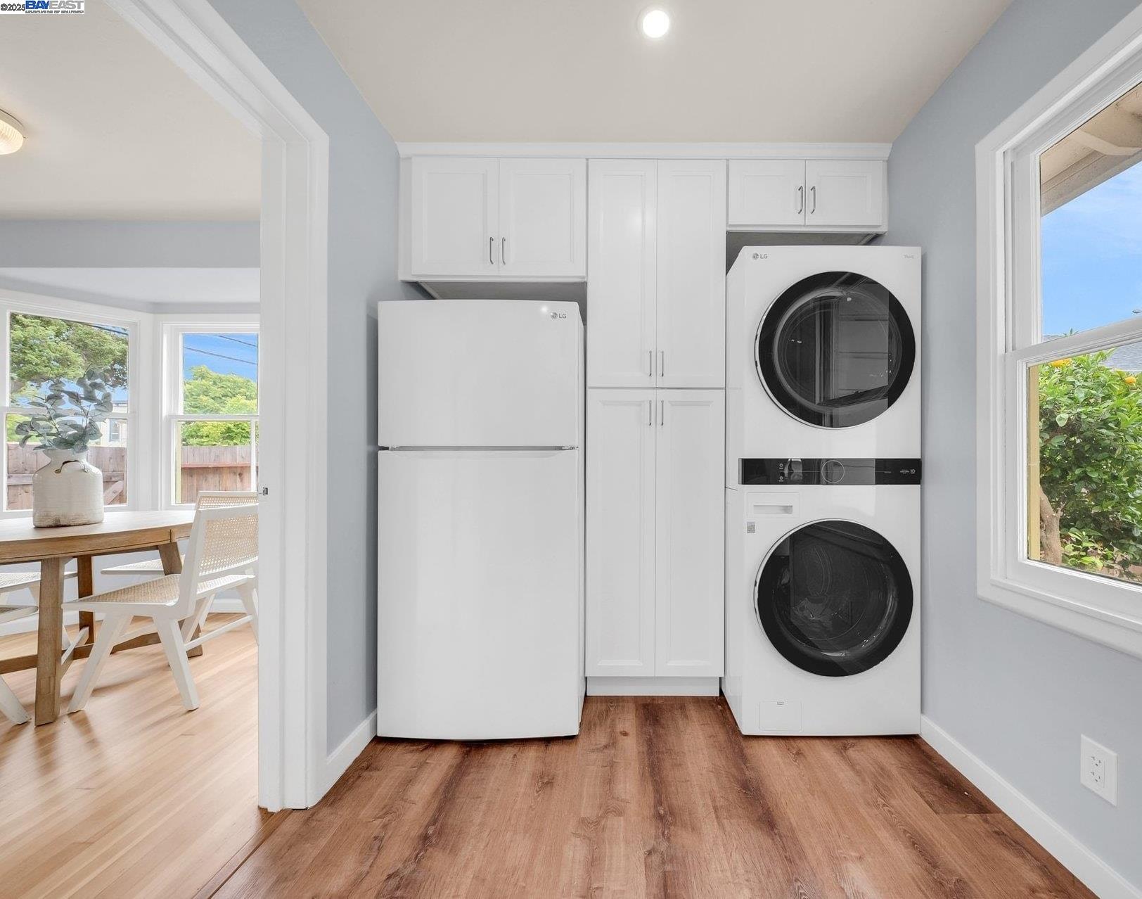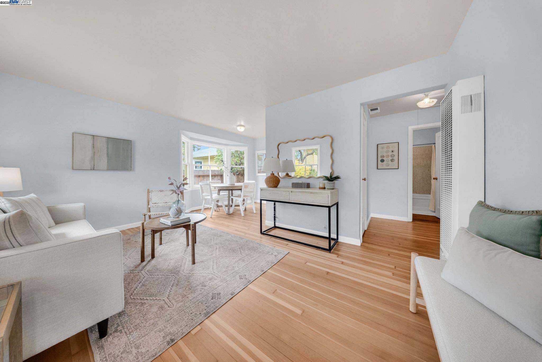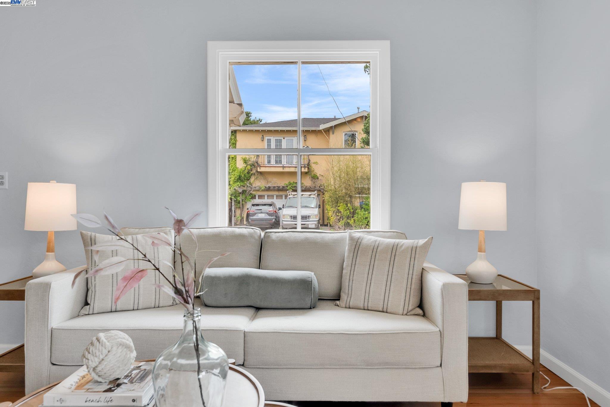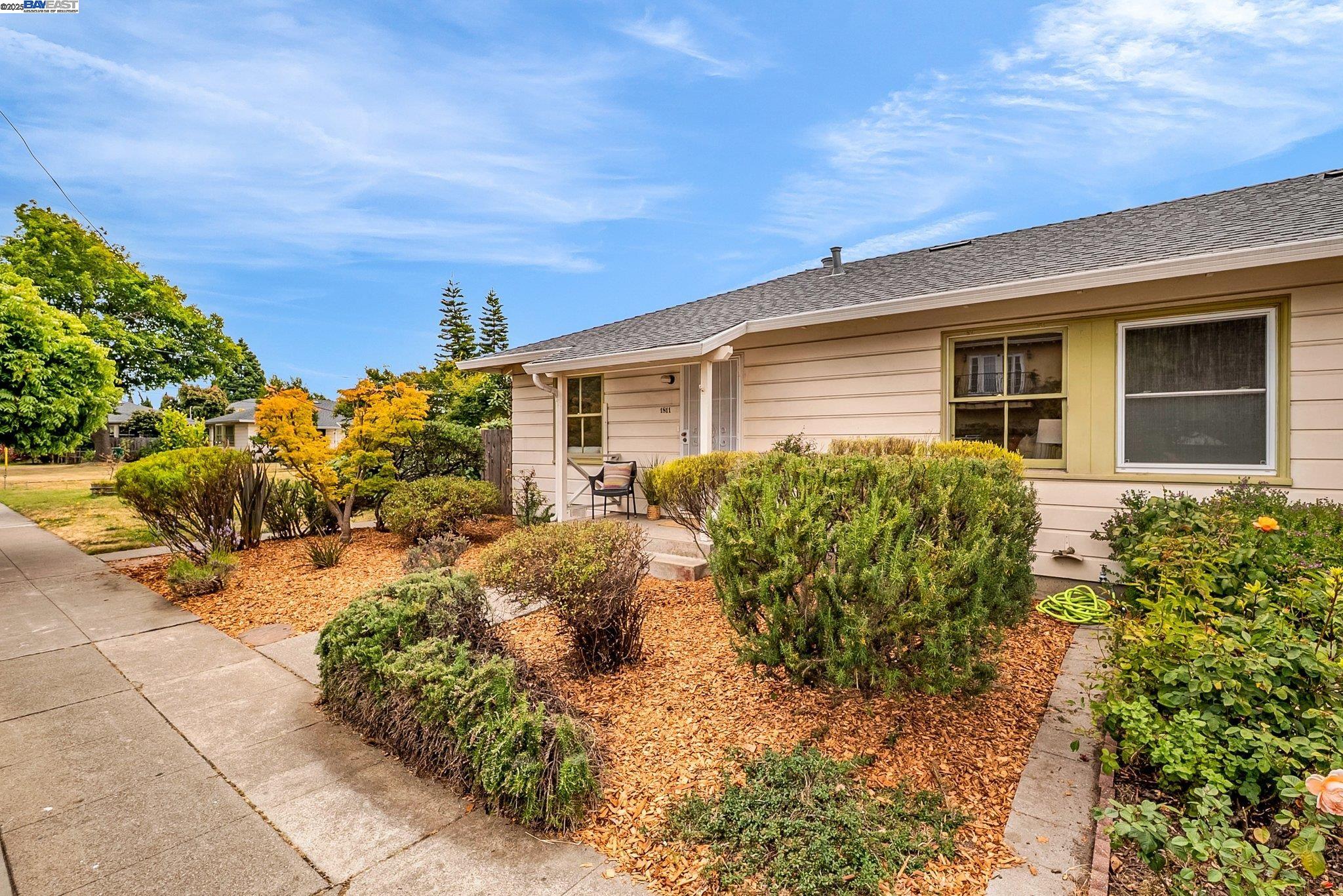 Welcome to Alameda's charming Island lifestyle with this unique 2+-bedroom, 1-bath 1940s duet cottage. Offering 1006 sq ft including a spacious 255 sq ft bonus family room, this home is nestled in the friendly Woodstock Homes cooperative community. Only blocks to the San Francisco Bay, trails and Encinal boat ramp with an 18 min crossing to San Francisco via the Seaplane Lagoon Ferry. Discover the charm of original refinished fir floors, wood windows, antique light fixtures and brass door knobs. The southern-facing bay window floods the dining area with natural light, creating a perfect dining experience. The private fenced yard, featuring a patio and lemon tree, provides peaceful outdoor space, while an electrified shed offers versatile use as an art studio or office. Recent upgrades include a beautifully remodeled kitchen with in-unit washer/dryer. Besides street parking, there is off-street parking for two cars in private parking wells, guest parking and an optional private detached garage available for rent. Enjoy proximity to dining and shopping at the Webster commercial district and Alameda Landing, or take the Woodstock estuary crossing water taxi to Jack London Square. This home perfectly blends historic charm with modern amenities in a prime West End Alameda location.
