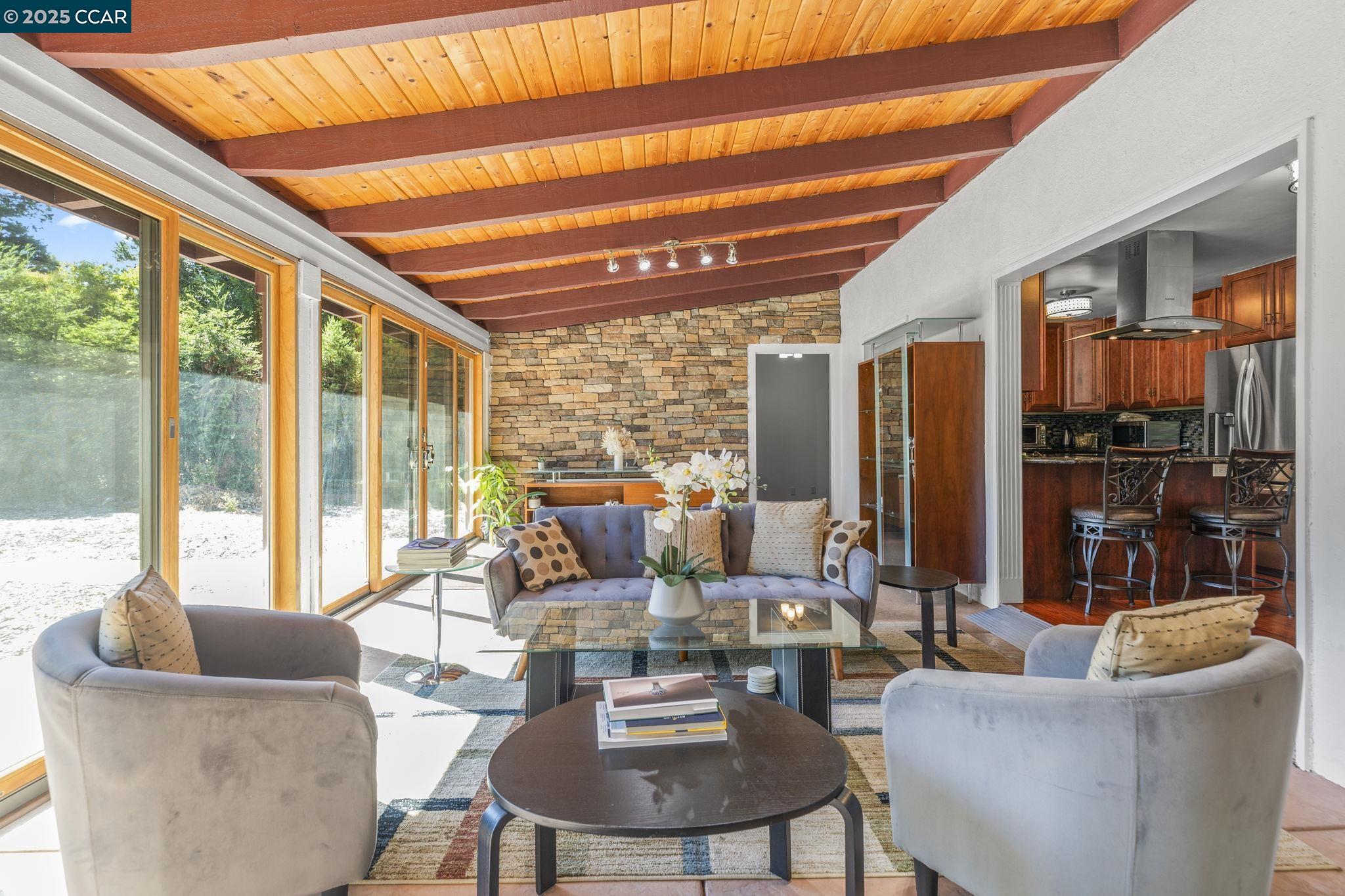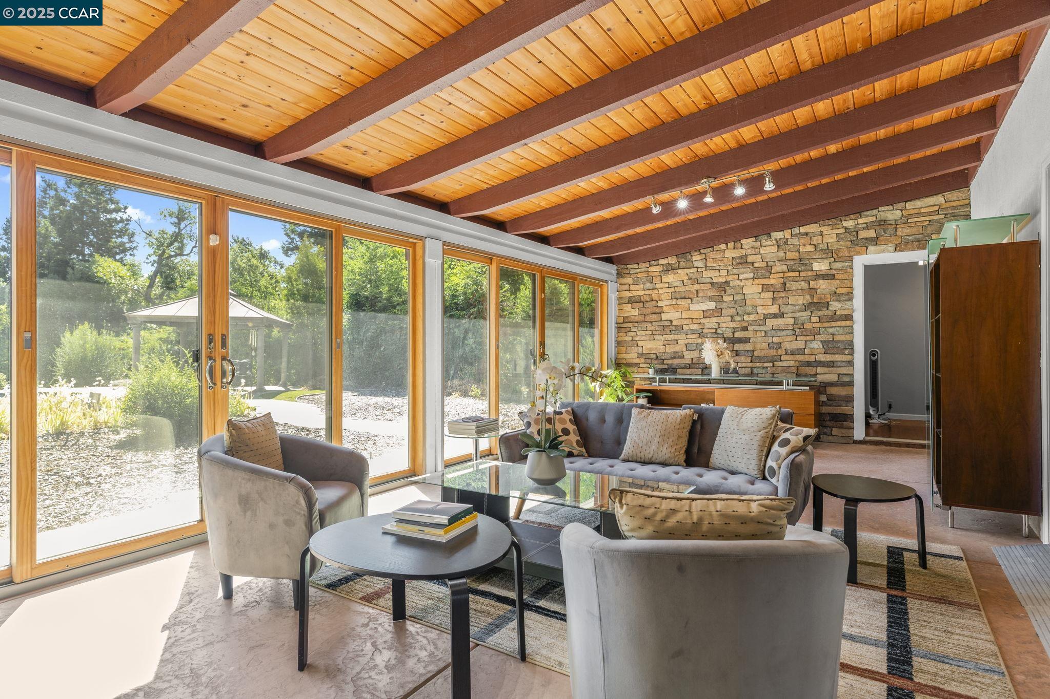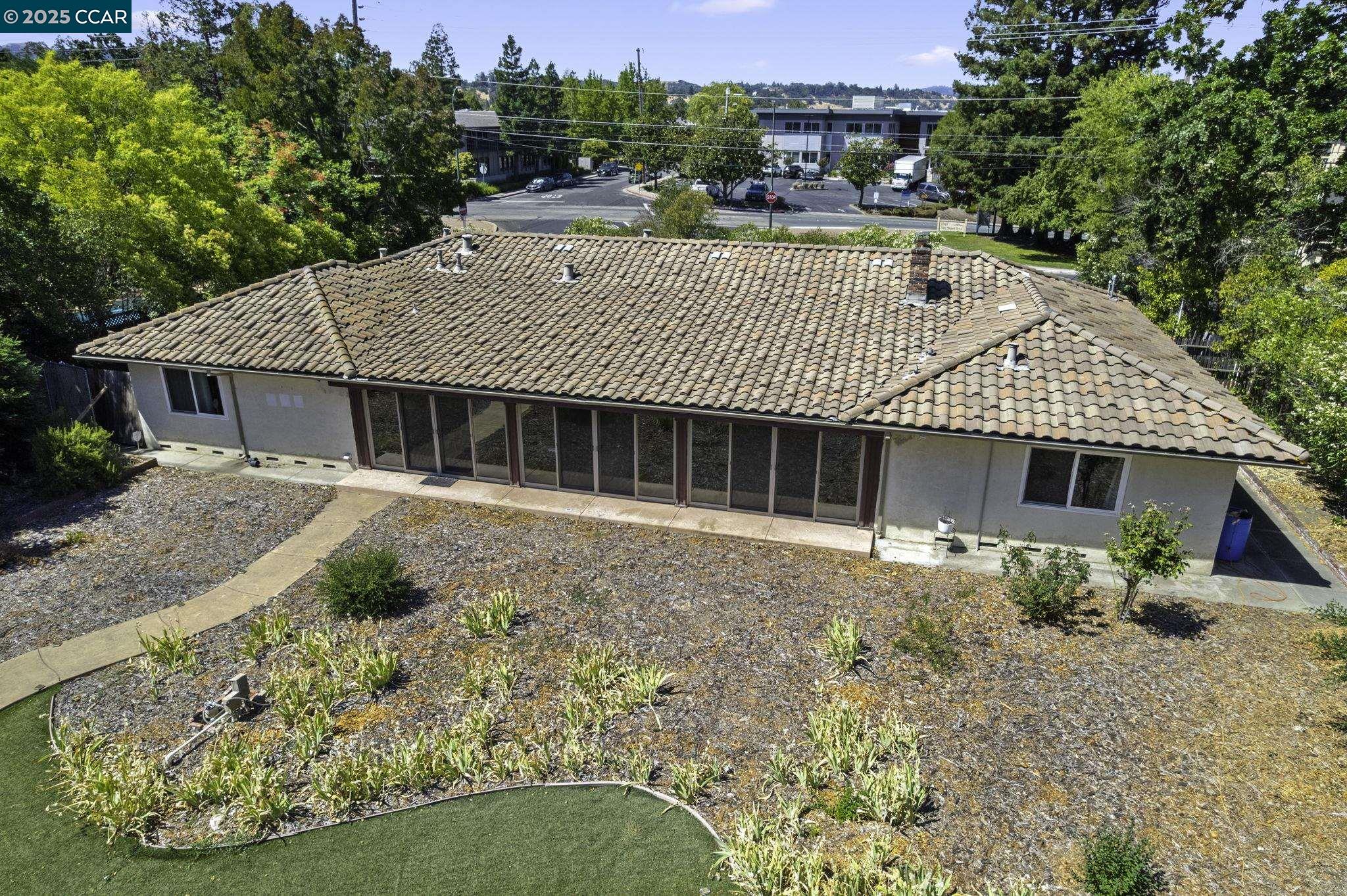 Discover the allure of this expansive single-story 4bd/2bth rancher with attached 1bd/1bth ADU situated steps away from the vibrant heart of downtown Broadway Plaza. Nestled on nearly three-quarters of an acre (0.73), this property presents an exceptional opportunity for significant expansion including an "additional" ADU or a potential subdividing lot subject to Walnut Creek's approval. The lot itself is a near-perfect rectangle, offering an ideal canvas for your vision. Be sure to review the drone photos for stunning overhead views. This residence is an entertainer and chef's dream, featuring a spacious cherrywood kitchen complete with elegant tile backsplash and a full suite of stainless steel appliances, including a double oven, chimney style hood. The home is bathed in natural light, thanks to the floor-to-ceiling wall to wall windows along the rear in the expansive bonus room. Primary bedroom on one end of the house, and three other bedrooms on the opposite side of home. The indoor laundry room is very spacious. Outside, there is a sparkling pool with water fountain, Baja Shelf and hot tub, spacious decks, two gazebos, grape vine field. AUD offers fully equipped kitchen, W/D, a full bath and split A/C and heater system. Located within the top rated Walnut Creek Schools.