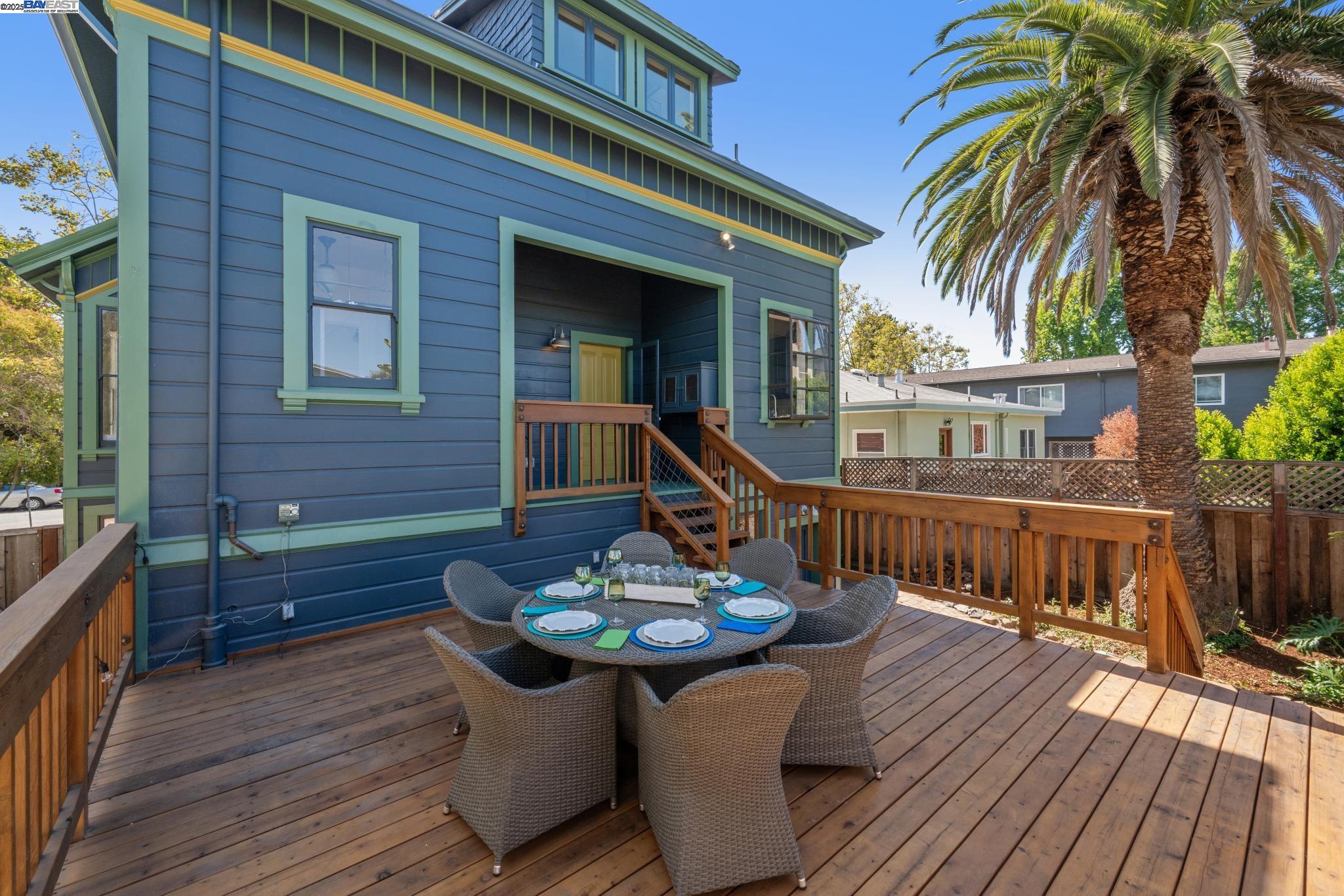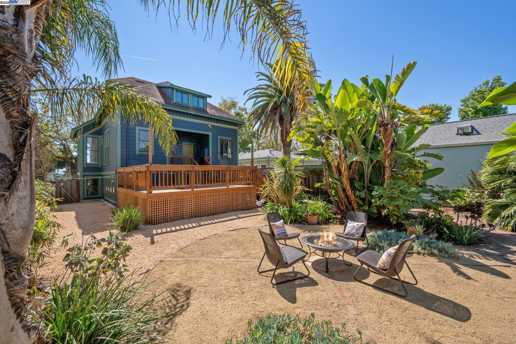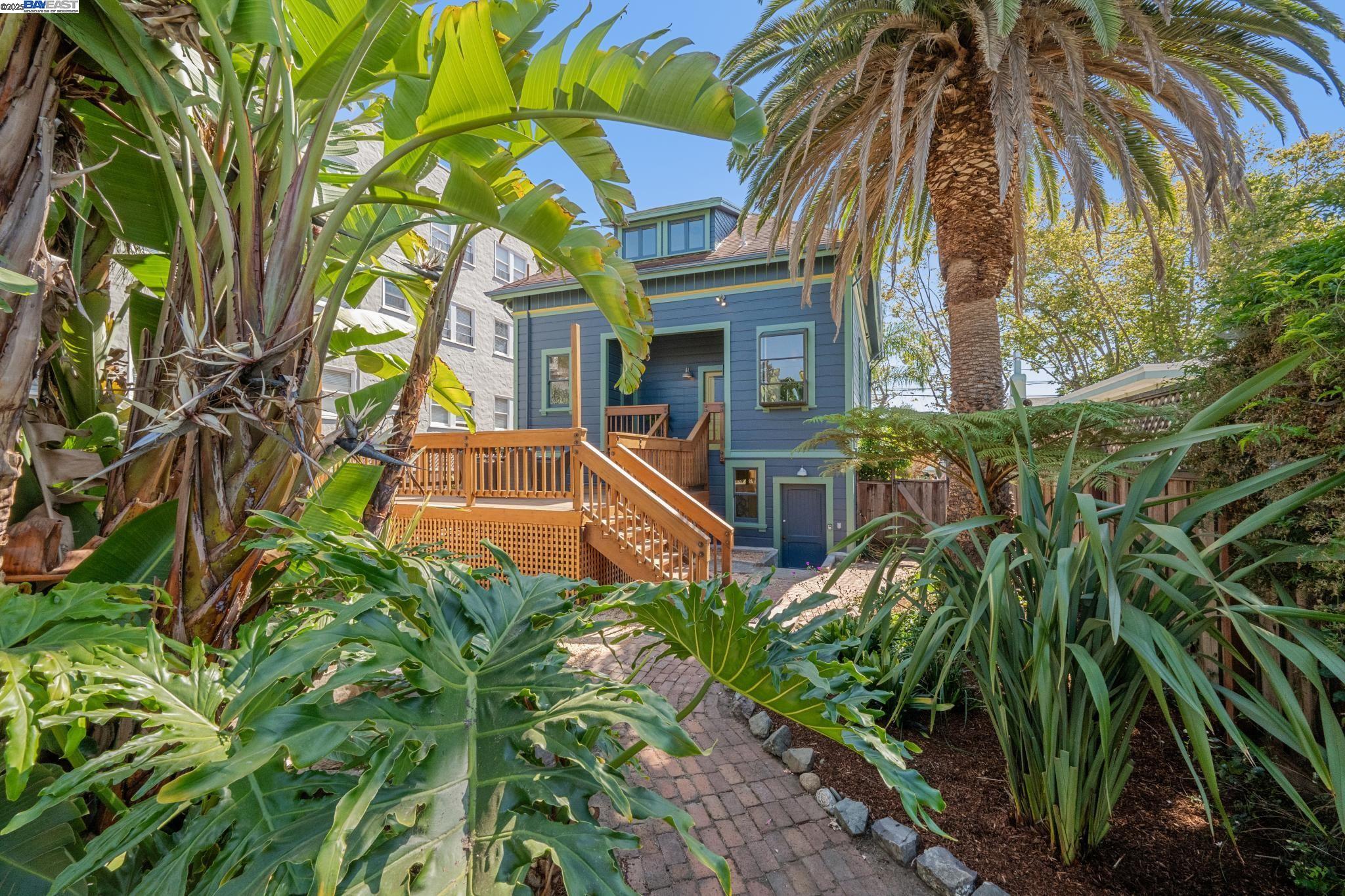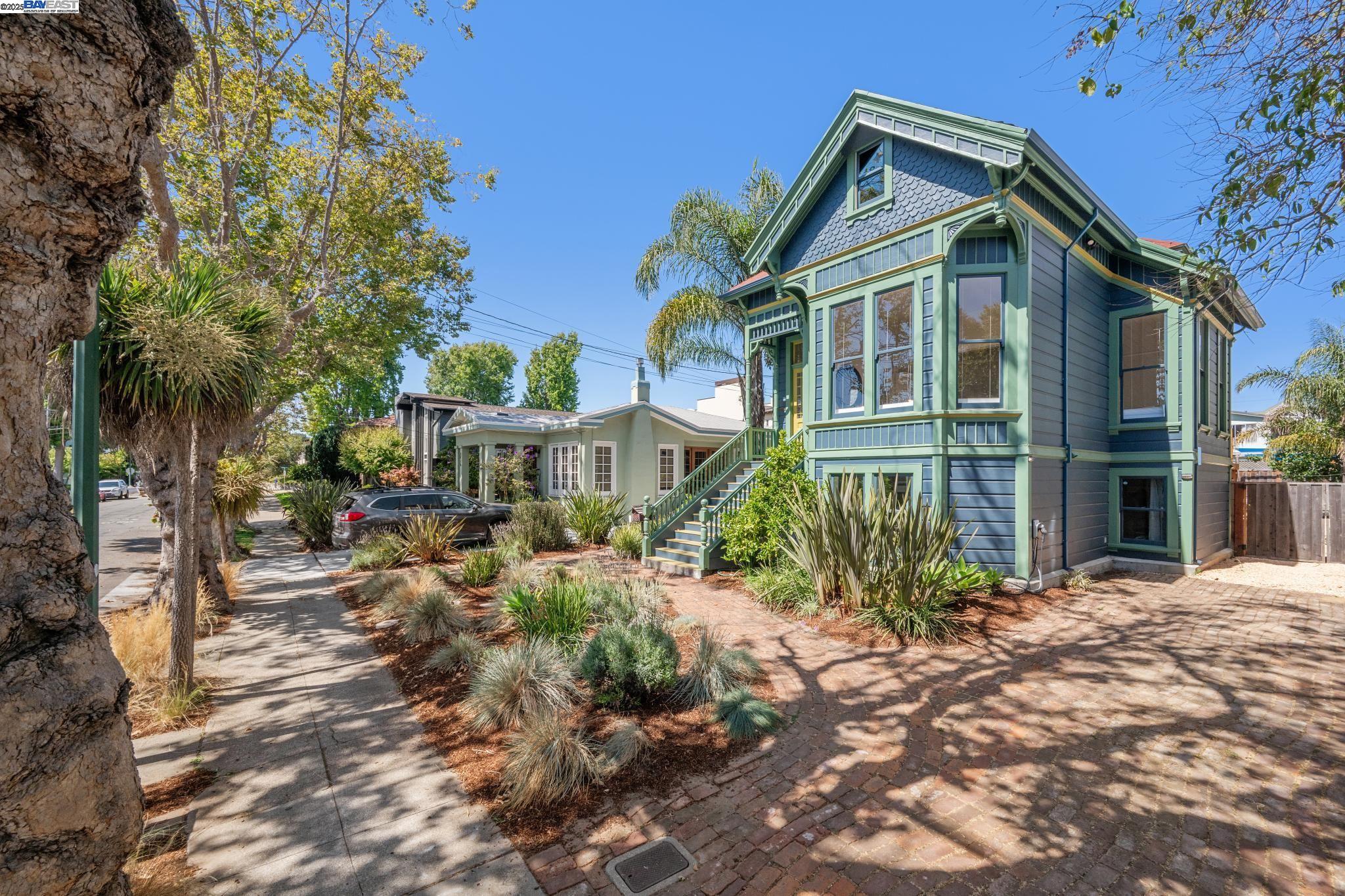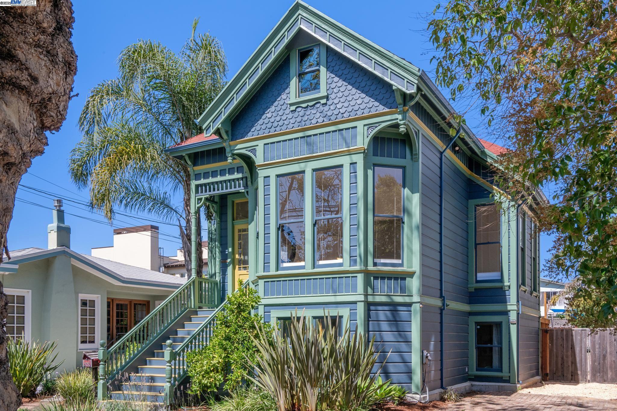Welcome to your exquisite 1895 Victorian in Alameda's prestigious Bronze Coast. This elegant home combines historic charm with modern sophistication, ideal for single or multi-generational living. Spanning 3,316 square feet, it offers five well-appointed bedrooms: three on the upper levels with a bath, kitchen, dining, and living room, plus two on the ground floor with their own spaces. Each level is linked by an elegant wood staircase and has private entrances. Inside, refined craftsmanship shines with a blend of hardwood and concrete floors. The renovated ground-level kitchen, bath, and bedrooms offer contemporary flair while preserving the home's original allure. Sunlight cascades through floor-to-ceiling windows, enhancing the ambiance created by chandeliers and recessed lighting. Storage is plentiful with a spacious walk-in closet and an expansive attic with architectural plans for future expansion. Outside, enjoy a lush tropical oasis with landscaped gardens, a large deck for dining, and serene patio spaces. Smart irrigation and a fenced perimeter ensure privacy and ease of maintenance. Ideally located with enviable walk and bike scores, and near Downtown Alameda, scenic beaches, shopping, and top schools. Experience unparalleled Island comfort and sophistication!
