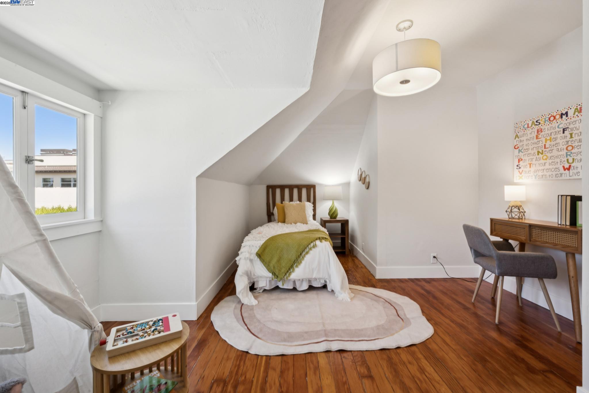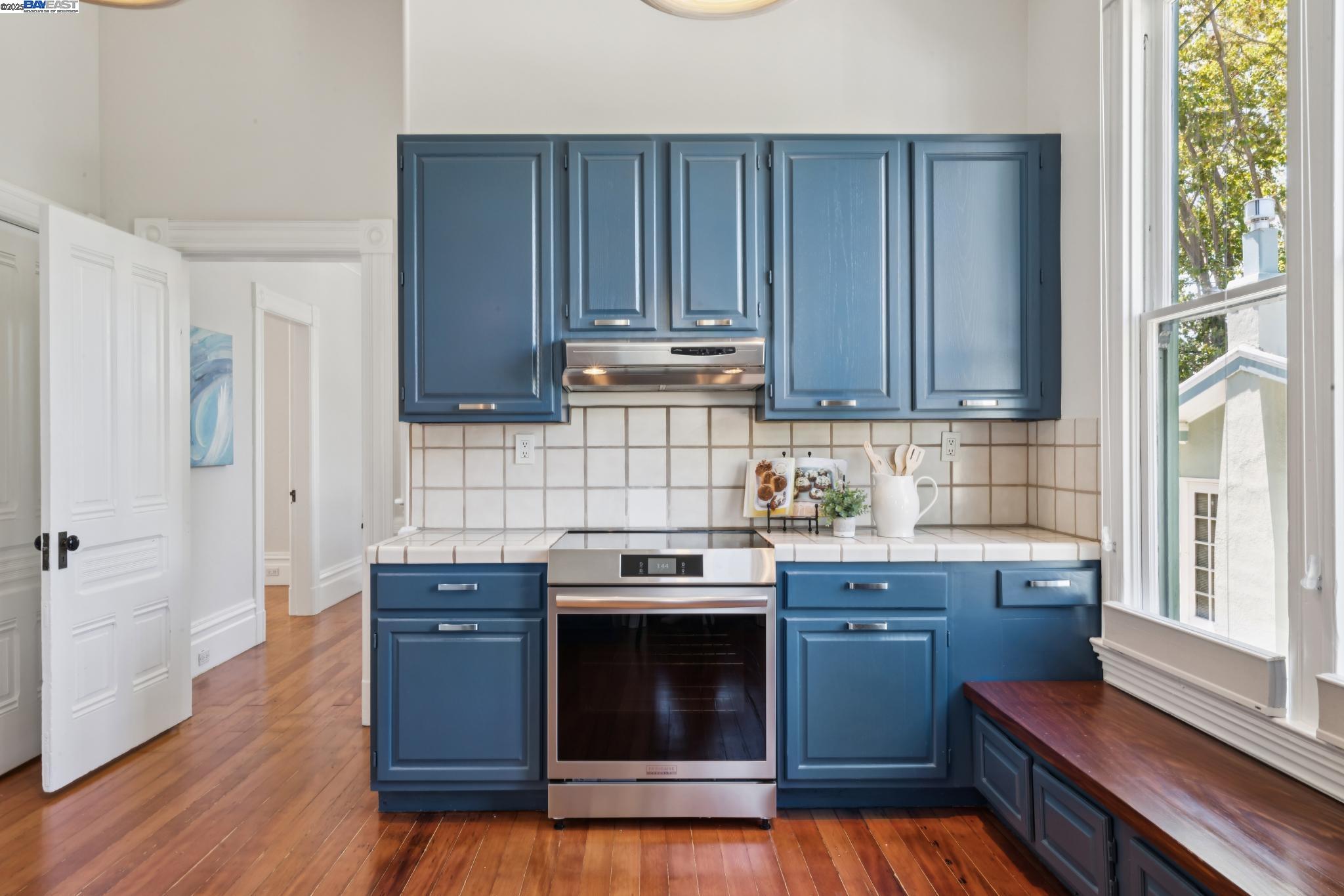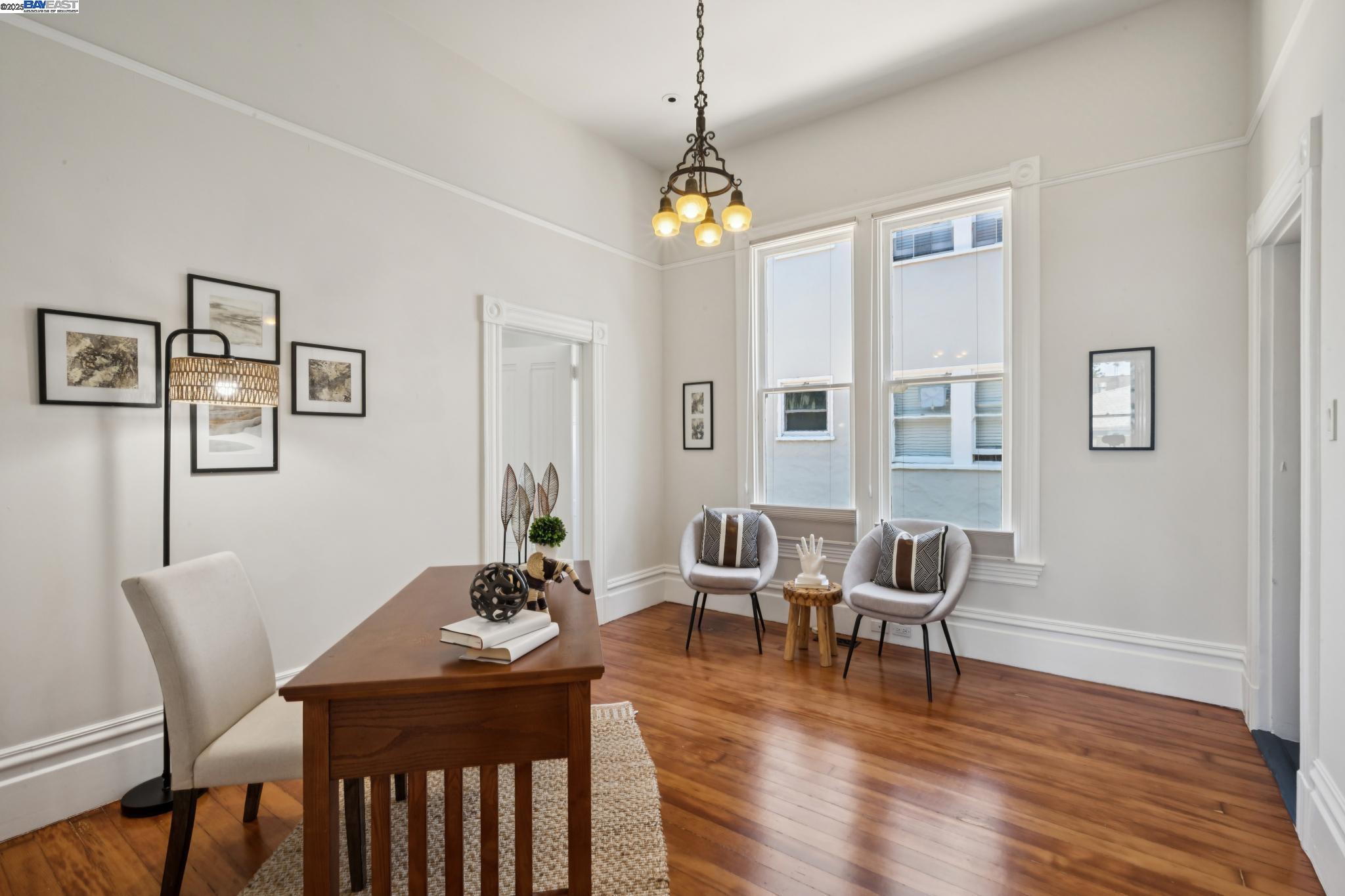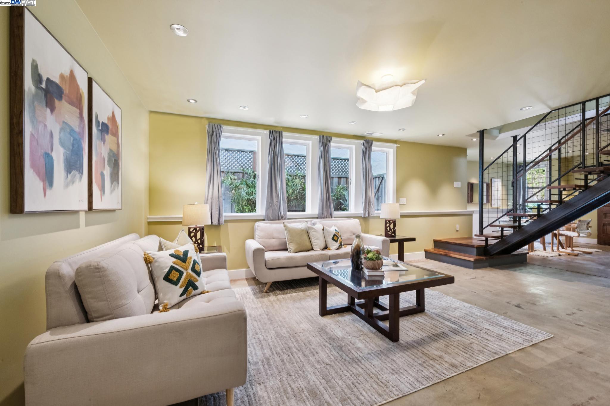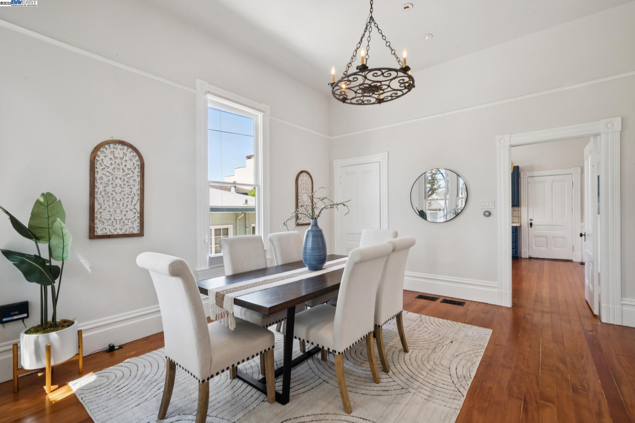 Welcome to your exquisite 1895 Victorian in Alameda's prestigious Bronze Coast. This elegant home combines historic charm with modern sophistication, ideal for single or multi-generational living. Spanning 3,316 square feet, it offers five well-appointed bedrooms: three on the upper levels with a bath, kitchen, dining, and living room, plus two on the ground floor with their own spaces. Each level is linked by an elegant wood staircase and has private entrances. Inside, refined craftsmanship shines with a blend of hardwood and concrete floors. The renovated ground-level kitchen, bath, and bedrooms offer contemporary flair while preserving the home's original allure. Sunlight cascades through floor-to-ceiling windows, enhancing the ambiance created by chandeliers and recessed lighting. Storage is plentiful with a spacious walk-in closet and an expansive attic with architectural plans for future expansion. Outside, enjoy a lush tropical oasis with landscaped gardens, a large deck for dining, and serene patio spaces. Smart irrigation and a fenced perimeter ensure privacy and ease of maintenance. Ideally located with enviable walk and bike scores, and near Downtown Alameda, scenic beaches, shopping, and top schools. Experience unparalleled Island comfort and sophistication!