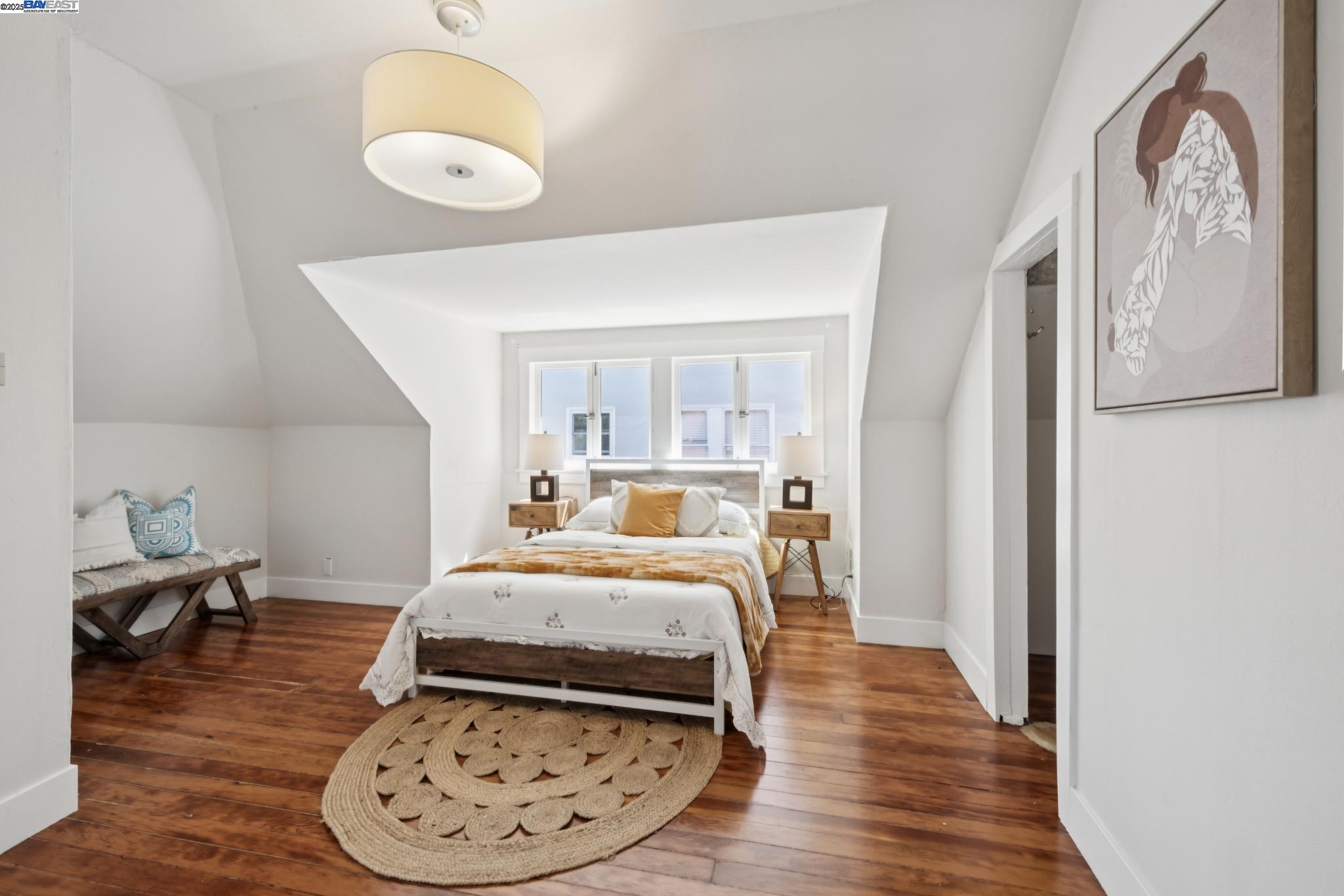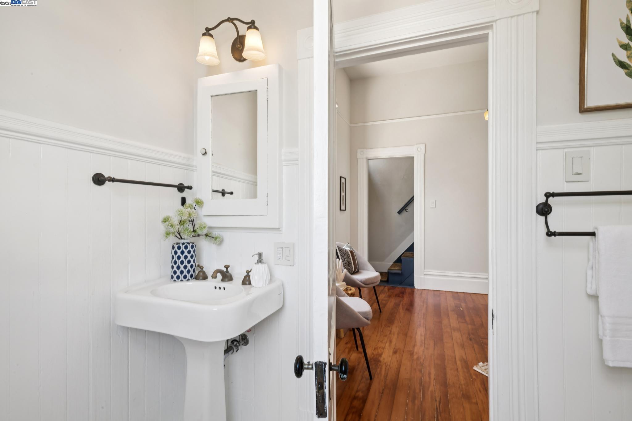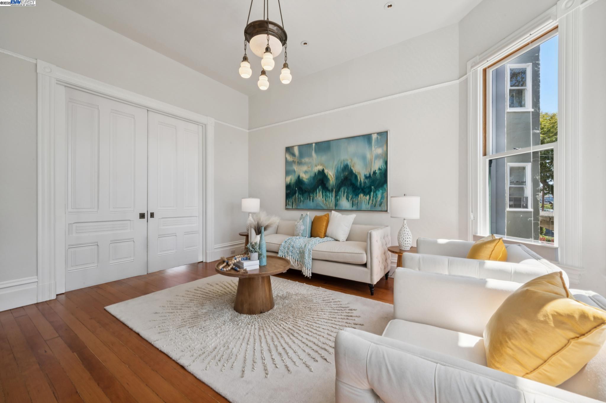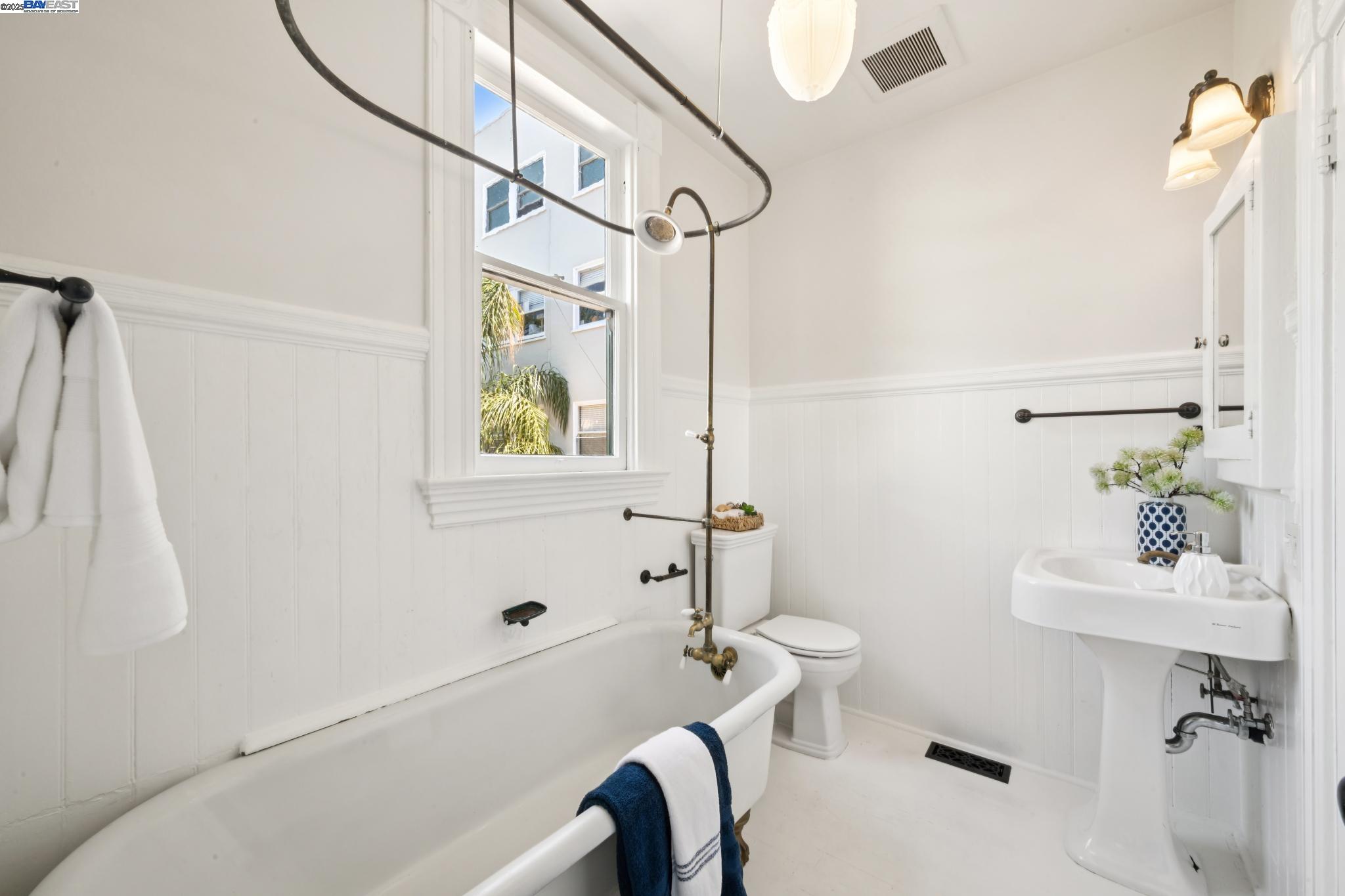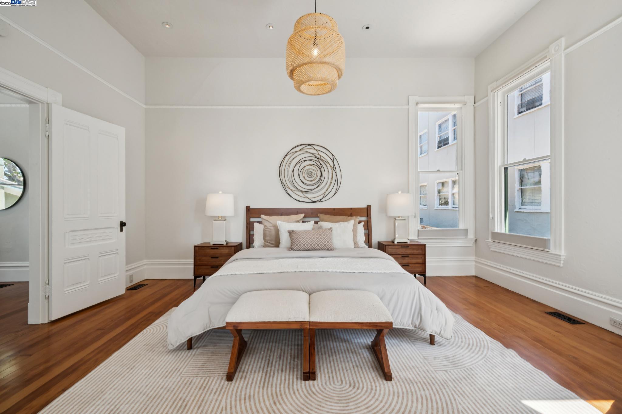 Welcome to your exquisite 1895 Victorian in Alameda's prestigious Bronze Coast. This elegant home combines historic charm with modern sophistication, ideal for single or multi-generational living. Spanning 3,316 square feet, it offers five well-appointed bedrooms: three on the upper levels with a bath, kitchen, dining, and living room, plus two on the ground floor with their own spaces. Each level is linked by an elegant wood staircase and has private entrances. Inside, refined craftsmanship shines with a blend of hardwood and concrete floors. The renovated ground-level kitchen, bath, and bedrooms offer contemporary flair while preserving the home's original allure. Sunlight cascades through floor-to-ceiling windows, enhancing the ambiance created by chandeliers and recessed lighting. Storage is plentiful with a spacious walk-in closet and an expansive attic with architectural plans for future expansion. Outside, enjoy a lush tropical oasis with landscaped gardens, a large deck for dining, and serene patio spaces. Smart irrigation and a fenced perimeter ensure privacy and ease of maintenance. Ideally located with enviable walk and bike scores, and near Downtown Alameda, scenic beaches, shopping, and top schools. Experience unparalleled Island comfort and sophistication!