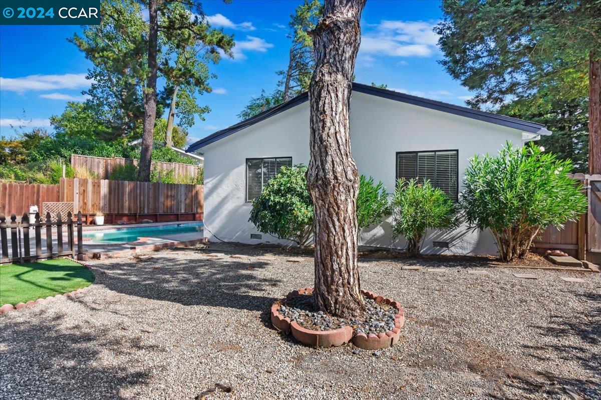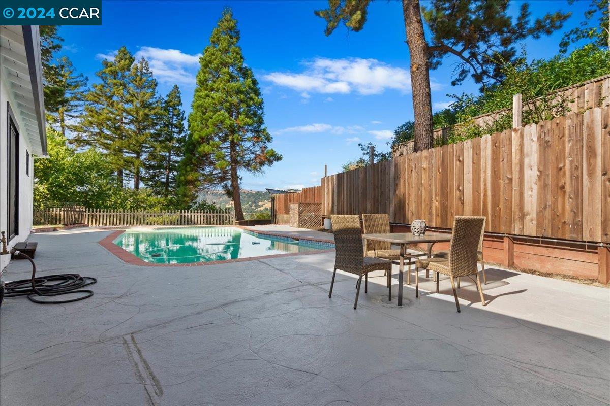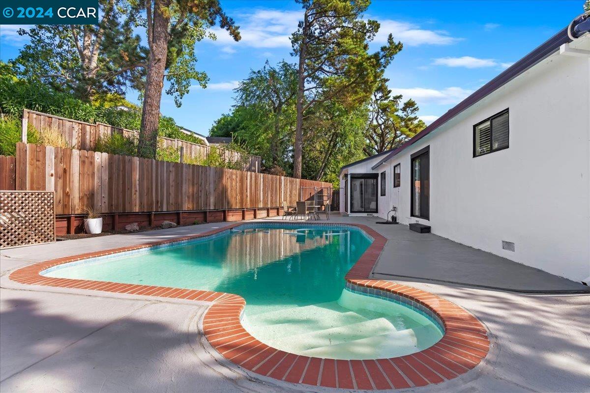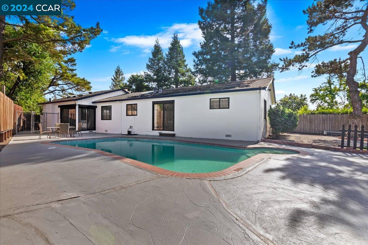 Nestled in a highly sought-after Lafayette neighborhood on a picturesque, tree-lined cul-de-sac, this charming single-level ranch-style home offers the perfect blend of comfort and convenience. Built in 1955, the 3-bedroom, 2-bathroom home features stunning views, hardwood floors throughout, and two cozy fireplaces. The welcoming formal entry leads to a spacious living area, while the kitchen boasts ample cabinetry and counter space, ideal for the home chef. A formal dining area and an additional room with outdoor access create a seamless flow for indoor-outdoor living. Step outside to the sparkling, fenced-in pool--perfect for entertaining and year-round BBQs. The primary bedroom includes a private ensuite bathroom, with two additional bedrooms offering plenty of space for family or guests. The 2-car garage includes a workshop and washer/dryer hookups for added convenience. This home is ideally located near major freeways (24, 580, 80, and 680), BART, and local shopping options like Diablo Foods, Whole Foods, and Trader Joe's. The vibrant downtown area, filled with top-rated restaurants, cafes, and coffee shops, is just minutes away. Top-rated Lafayette schools, including St. Perpetua, are nearby and the area offers ample outdoor recreation. Come discover Lafayette!