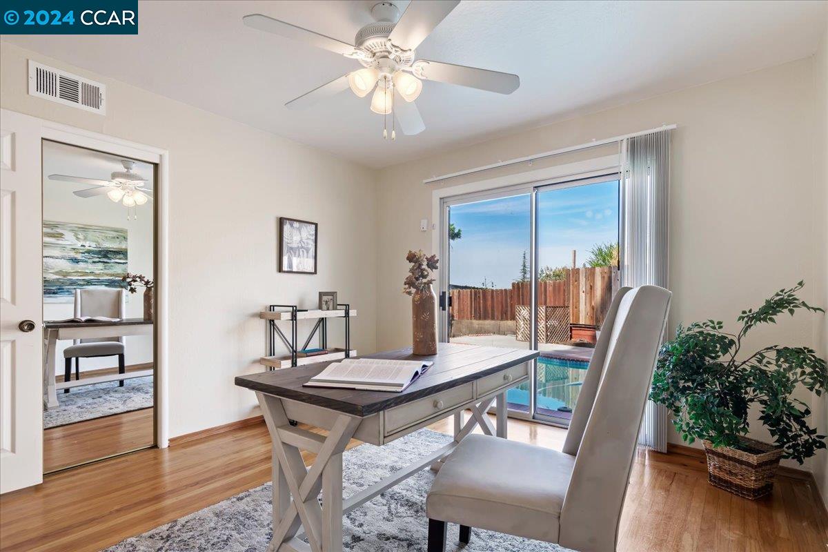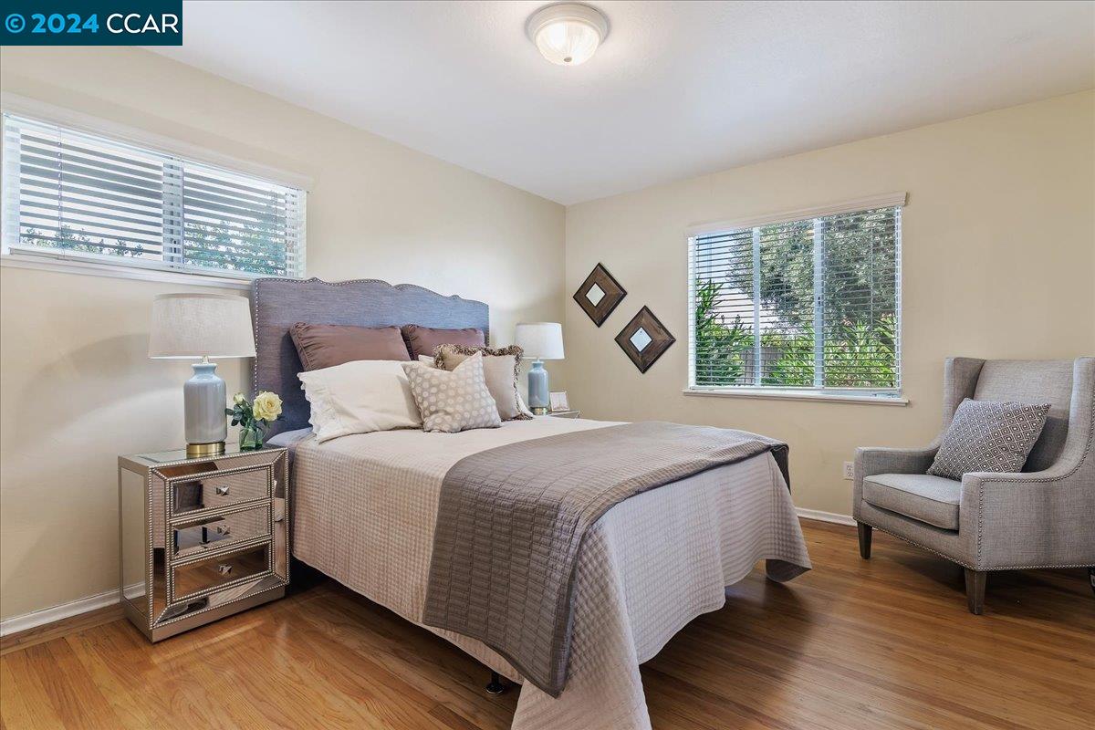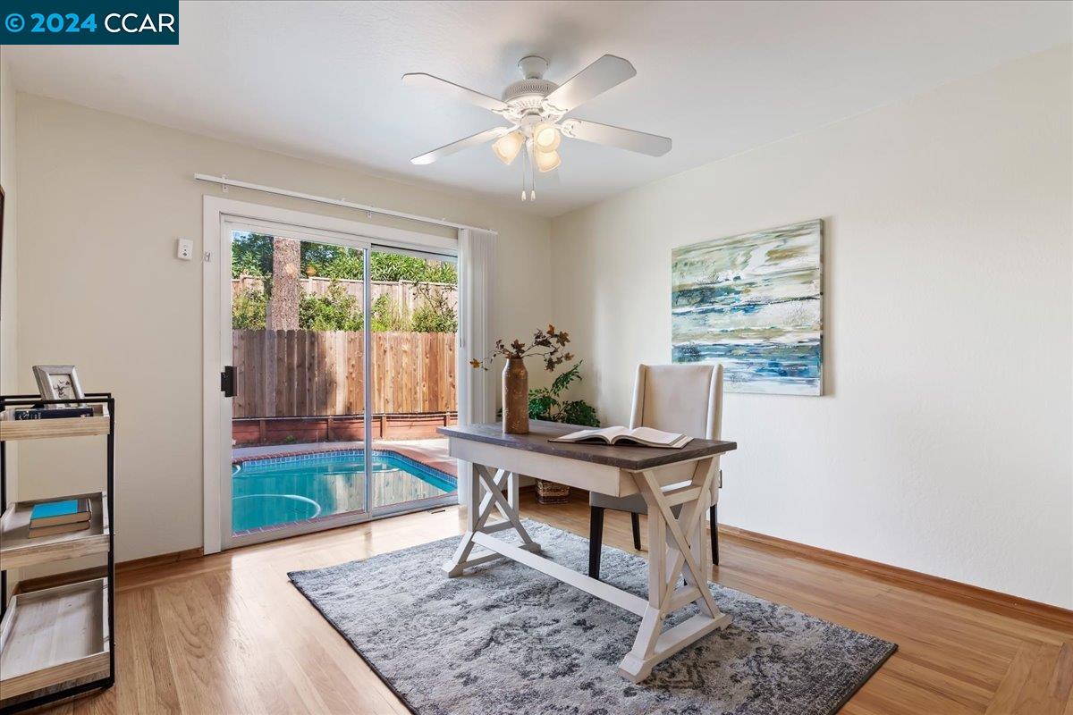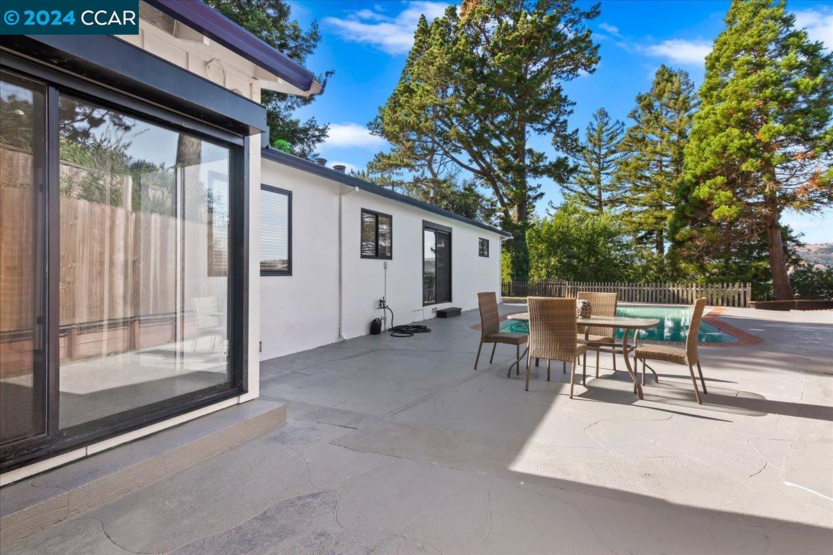 Nestled in a highly sought-after Lafayette neighborhood on a picturesque, tree-lined cul-de-sac, this charming single-level ranch-style home offers the perfect blend of comfort and convenience. Built in 1955, the 3-bedroom, 2-bathroom home features stunning views, hardwood floors throughout, and two cozy fireplaces. The welcoming formal entry leads to a spacious living area, while the kitchen boasts ample cabinetry and counter space, ideal for the home chef. A formal dining area and an additional room with outdoor access create a seamless flow for indoor-outdoor living. Step outside to the sparkling, fenced-in pool--perfect for entertaining and year-round BBQs. The primary bedroom includes a private ensuite bathroom, with two additional bedrooms offering plenty of space for family or guests. The 2-car garage includes a workshop and washer/dryer hookups for added convenience. This home is ideally located near major freeways (24, 580, 80, and 680), BART, and local shopping options like Diablo Foods, Whole Foods, and Trader Joe's. The vibrant downtown area, filled with top-rated restaurants, cafes, and coffee shops, is just minutes away. Top-rated Lafayette schools, including St. Perpetua, are nearby and the area offers ample outdoor recreation. Come discover Lafayette!