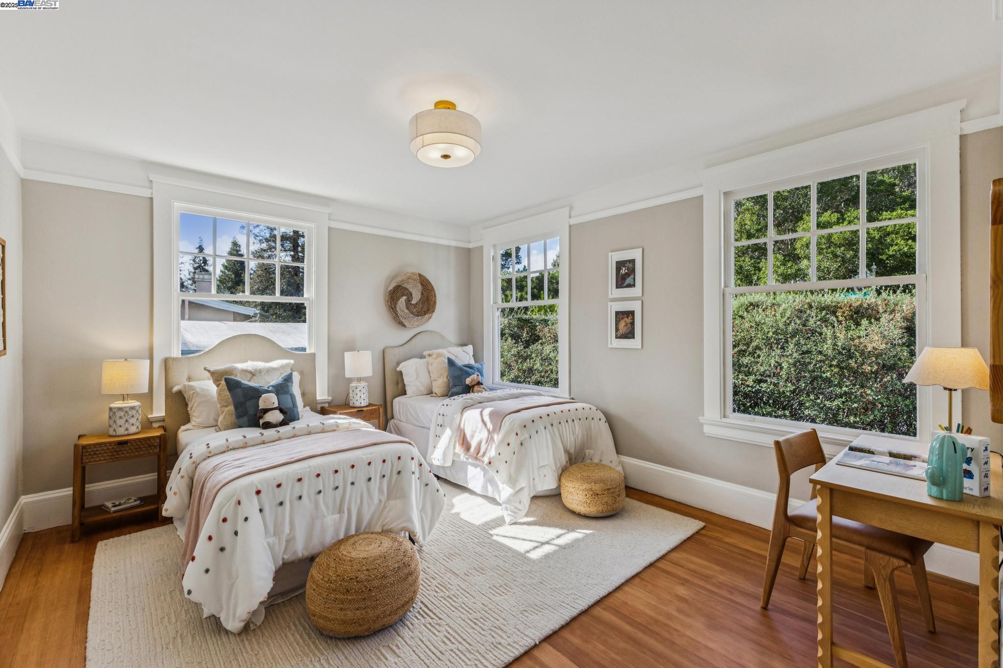 Welcome to an exquisite Upper Rockridge Craftsman home where elegance meets historic charm. Nestled on a generous 7,200 square-foot lot this residence boasts 2,786 square feet of beautiful space. Step inside to discover four true bedrooms and two and a half bathrooms, including a primary ensuite, walk-in and numerous oversized closets. Natural sunlight pours through the large sash wood windows, highlighting the graceful crown and decorative moldings. The grand curved stairs and rich hardwood floors throughout enhance the home's timeless appeal. Entertain in style in the spacious living room and formal dining room adorned with chandeliers, bay windows, and French Doors or retreat to the serene courtyard, rear deck and garden. Culinary enthusiasts will relish the granite kitchen counters, new stainless-steel appliances, built-in cabinets and windowed kitchen. The detached two car garage, workshop, full basement, laundry room and ample storage provide room for both creative projects and expansion, while the deck and front and back yards offer perfect outdoor retreats. Located just a block from the cherished Village Market, Broadway Terrace Nursery, the Claremont Country Club and Hillcrest School, this home is a true gem. Embrace the timeless elegance of this exceptional property.