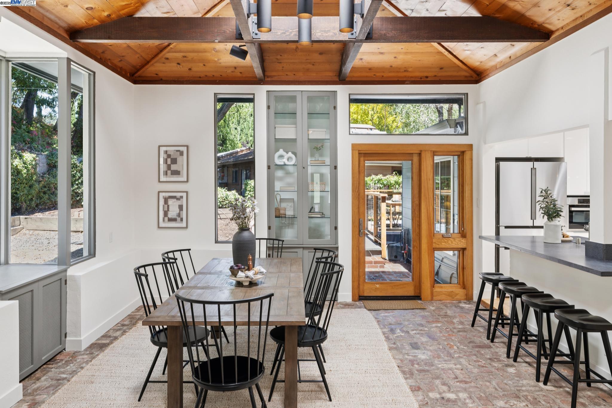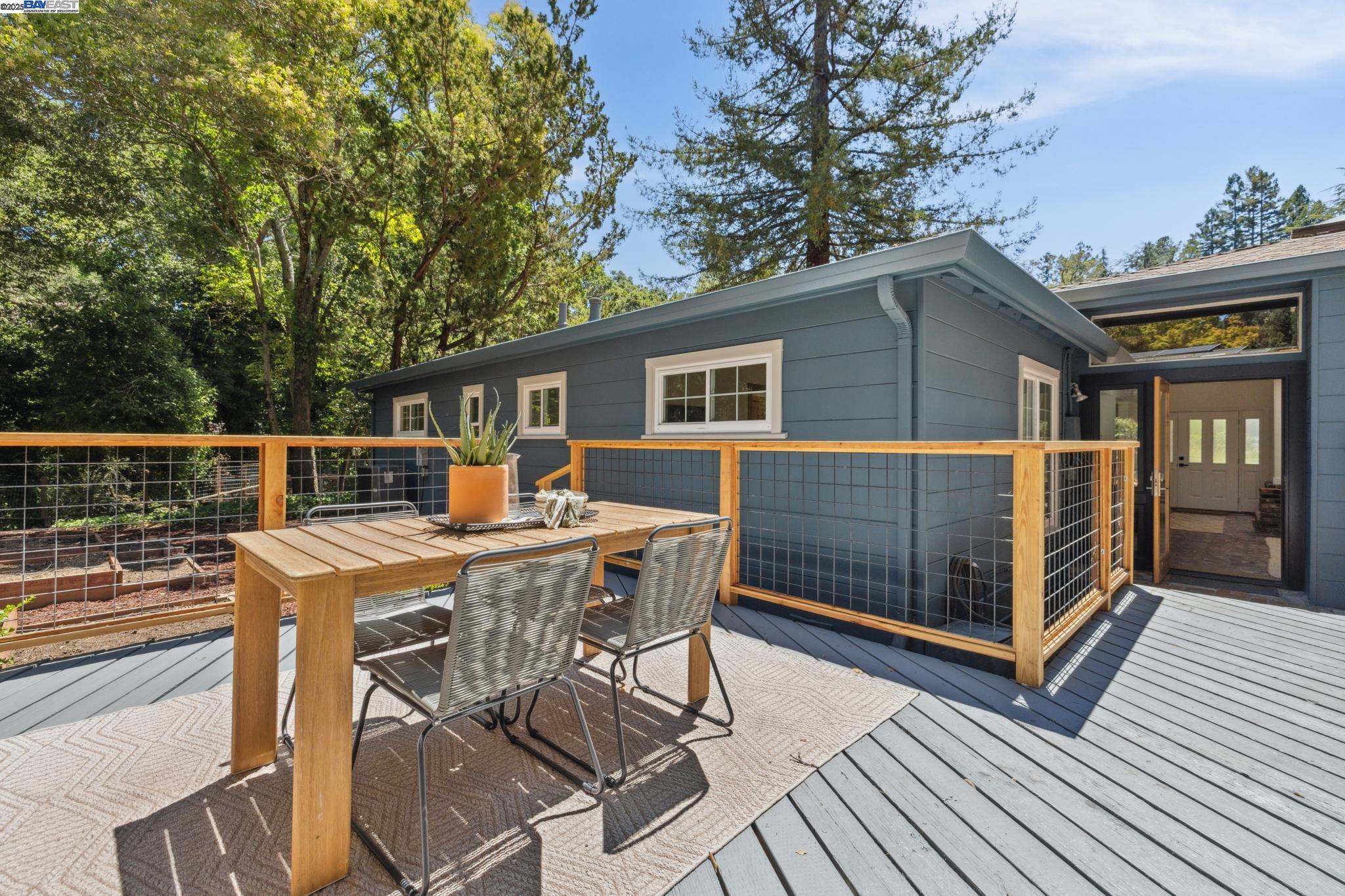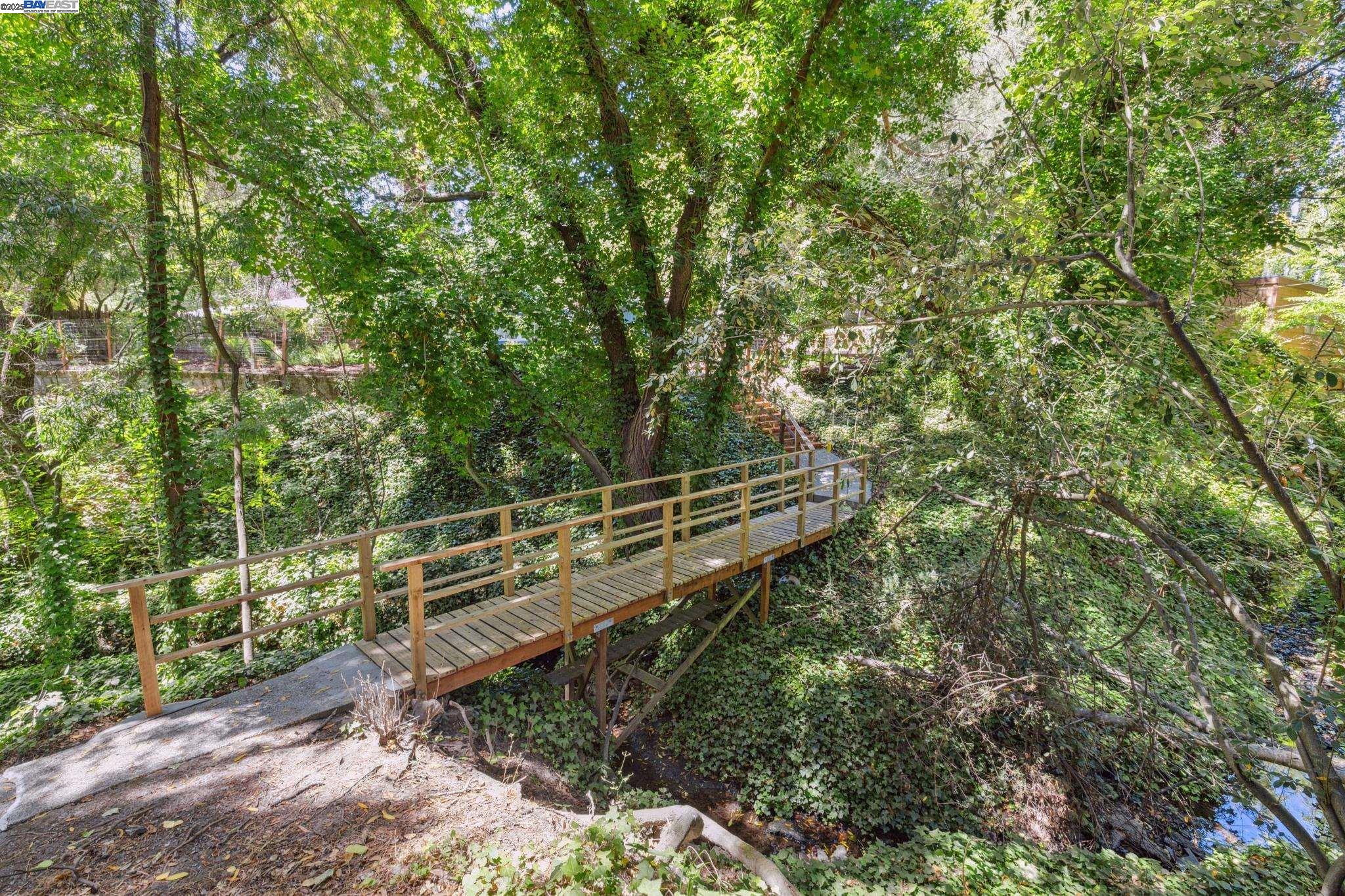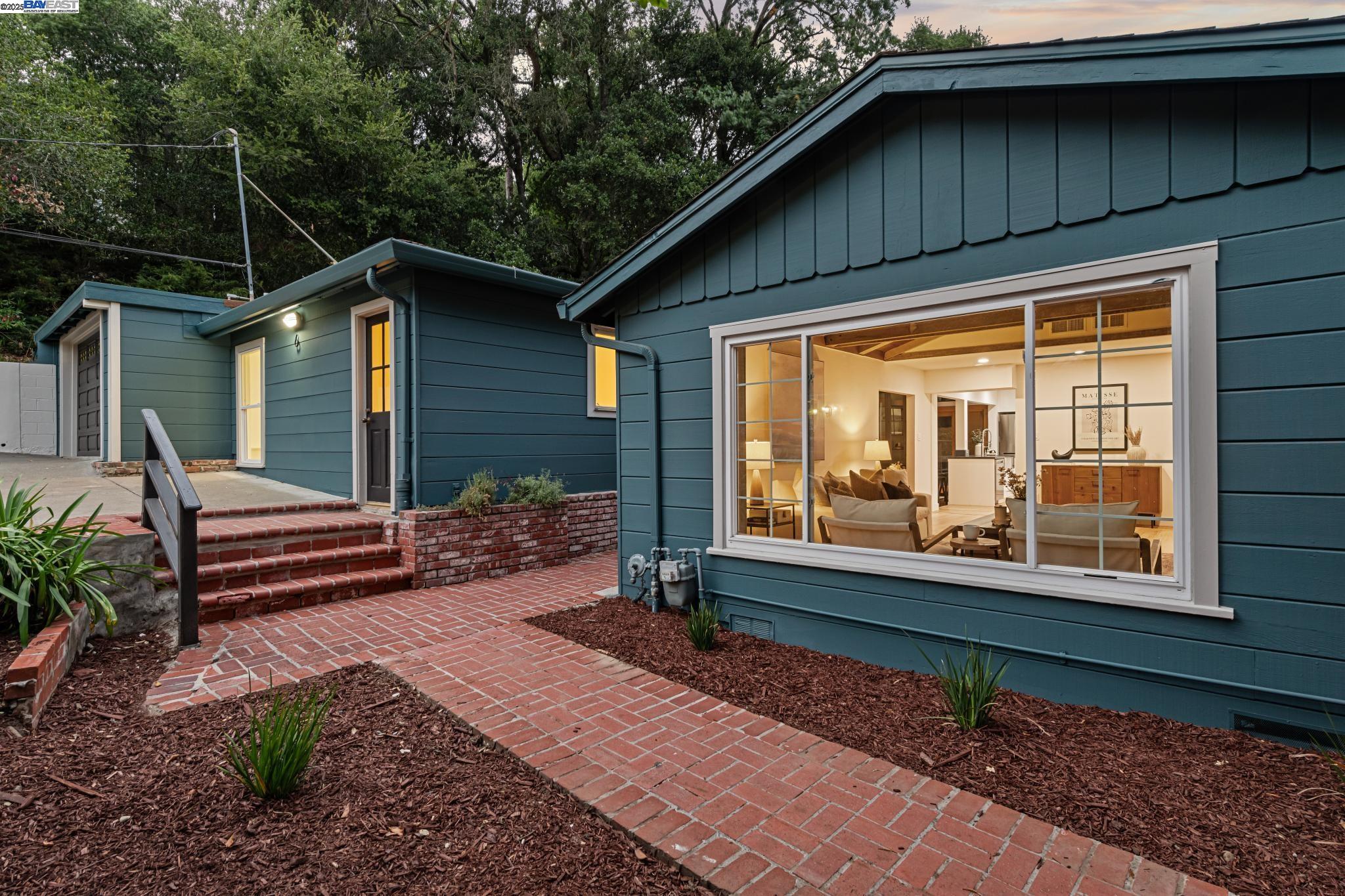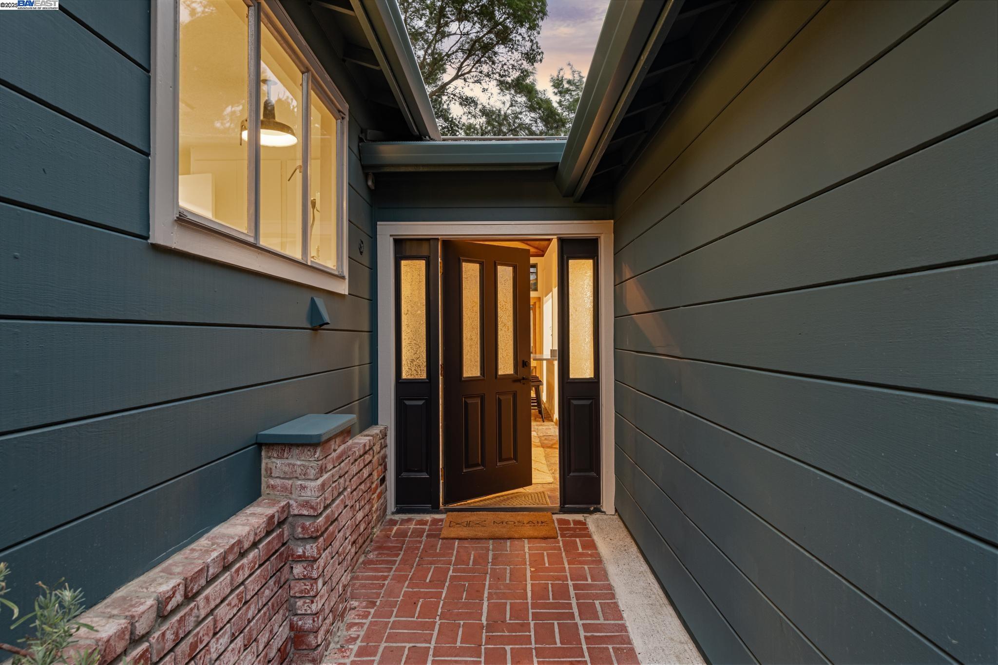 Tucked away on a private cul-de-sac, this beautifully refreshed mid-century gem offers timeless character, modern updates, and extraordinary land. Inside, you'll find a thoughtfully updated kitchen and refreshed bathrooms, along with refinished hardwood floors and fresh interior/exterior paint that enhance the home's clean, classic aesthetic. The regal great room steals the show with vaulted ceilings, exposed beams, and generous natural light--perfect for entertaining. The flexible floor plan includes 4 bedrooms, 2 bathrooms, an office nook, and an enclosed sunroom, offering space for every lifestyle. Step outside to your own private haven: a sun-drenched deck with new handrails, serene backyard, raised garden beds, and a storage shed, all framed by lush natural surroundings. Set on a sprawling 0.77-acre lot, the property features a private bridge over a tranquil creek, leading to an additional carport and second access from Moraga Way. Whether hosting or unwinding, this home offers an ideal indoor-outdoor experience. Additional highlights include a 1-car garage, proximity to top-rated Orinda schools, and a peaceful setting that feels miles away--yet moments from everything.