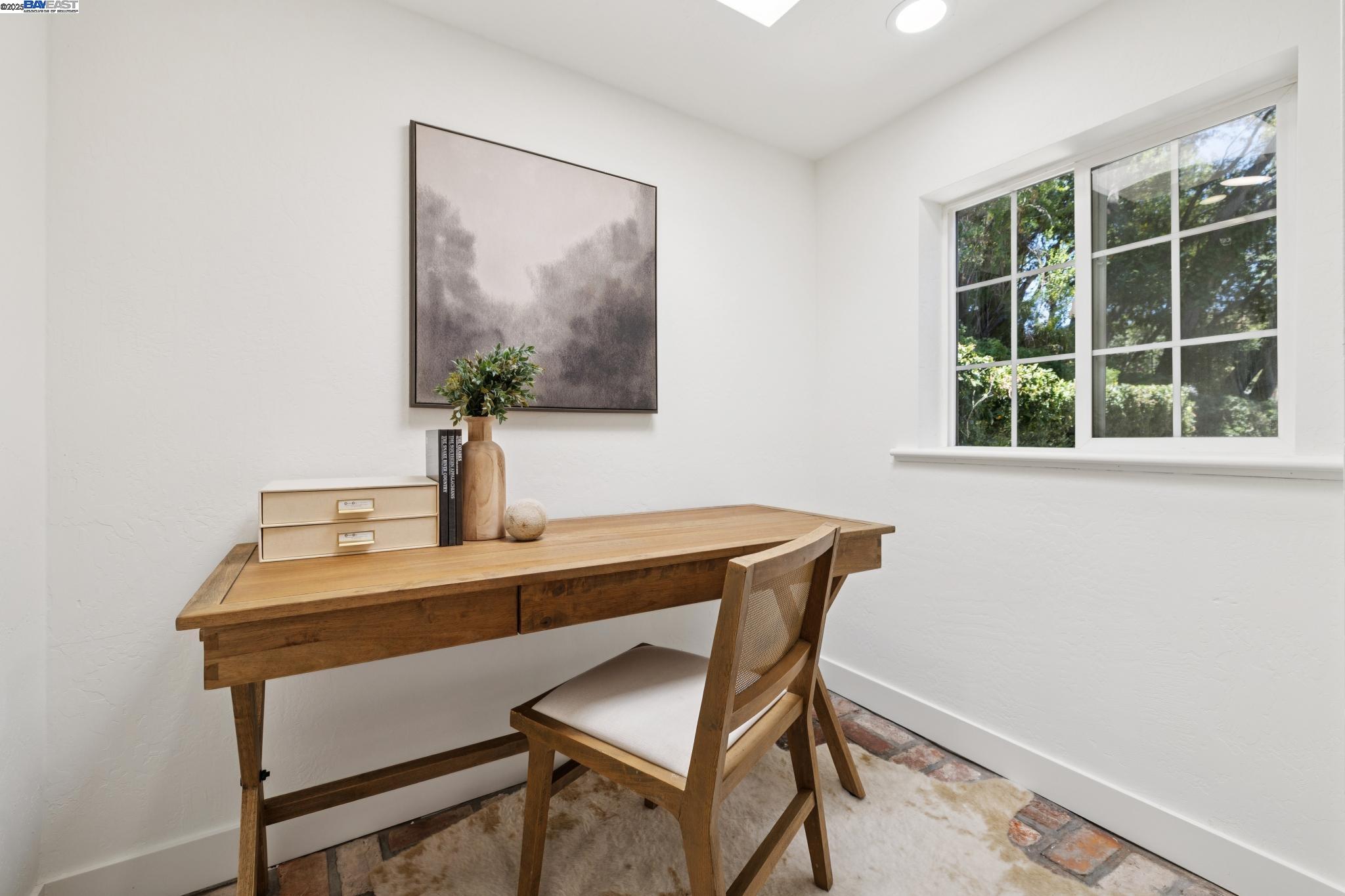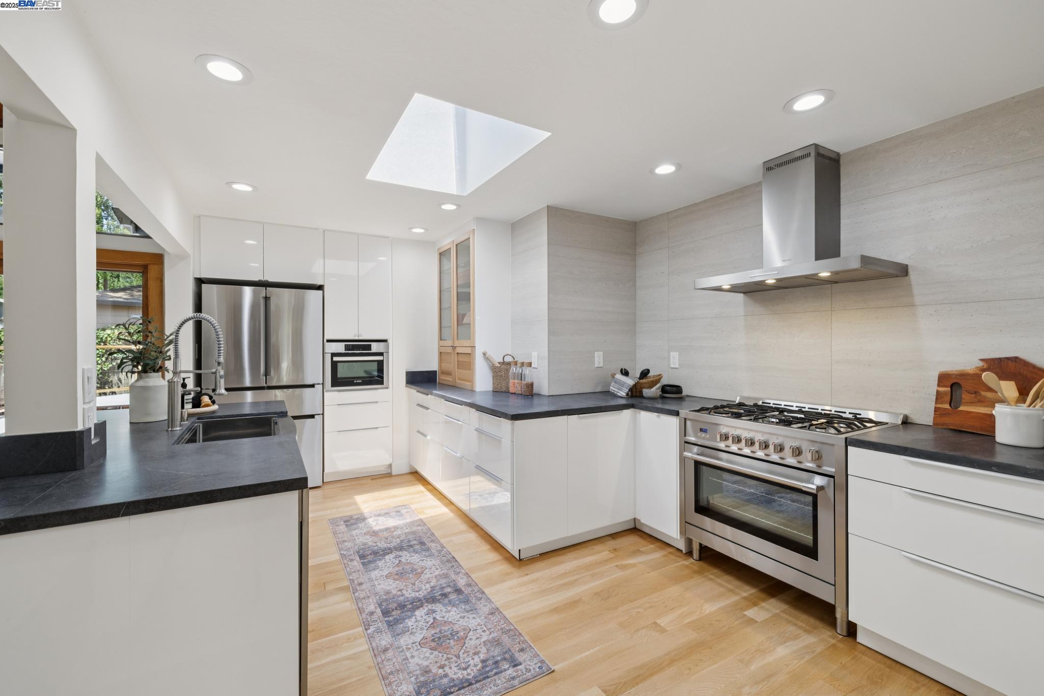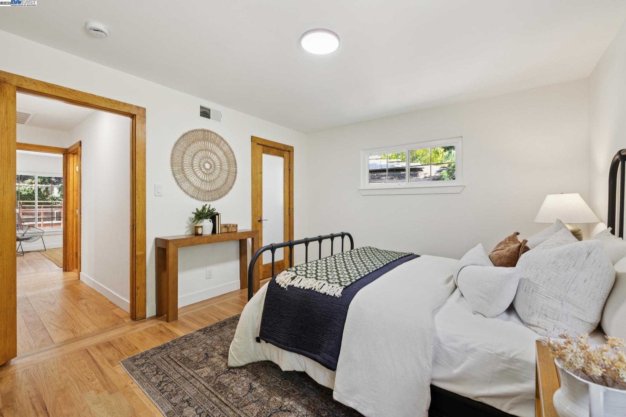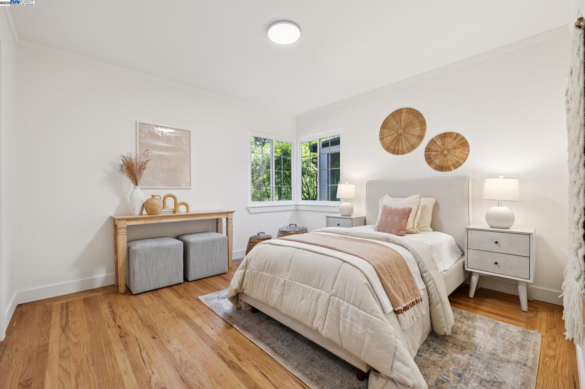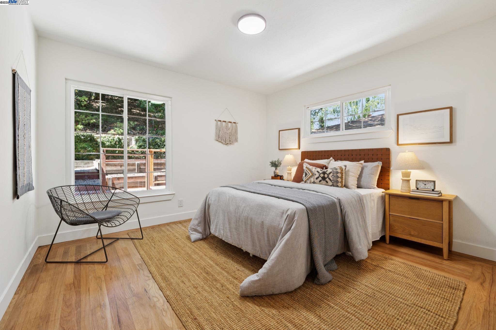 Tucked away on a private cul-de-sac, this beautifully refreshed mid-century gem offers timeless character, modern updates, and extraordinary land. Inside, you'll find a thoughtfully updated kitchen and refreshed bathrooms, along with refinished hardwood floors and fresh interior/exterior paint that enhance the home's clean, classic aesthetic. The regal great room steals the show with vaulted ceilings, exposed beams, and generous natural light--perfect for entertaining. The flexible floor plan includes 4 bedrooms, 2 bathrooms, an office nook, and an enclosed sunroom, offering space for every lifestyle. Step outside to your own private haven: a sun-drenched deck with new handrails, serene backyard, raised garden beds, and a storage shed, all framed by lush natural surroundings. Set on a sprawling 0.77-acre lot, the property features a private bridge over a tranquil creek, leading to an additional carport and second access from Moraga Way. Whether hosting or unwinding, this home offers an ideal indoor-outdoor experience. Additional highlights include a 1-car garage, proximity to top-rated Orinda schools, and a peaceful setting that feels miles away--yet moments from everything.