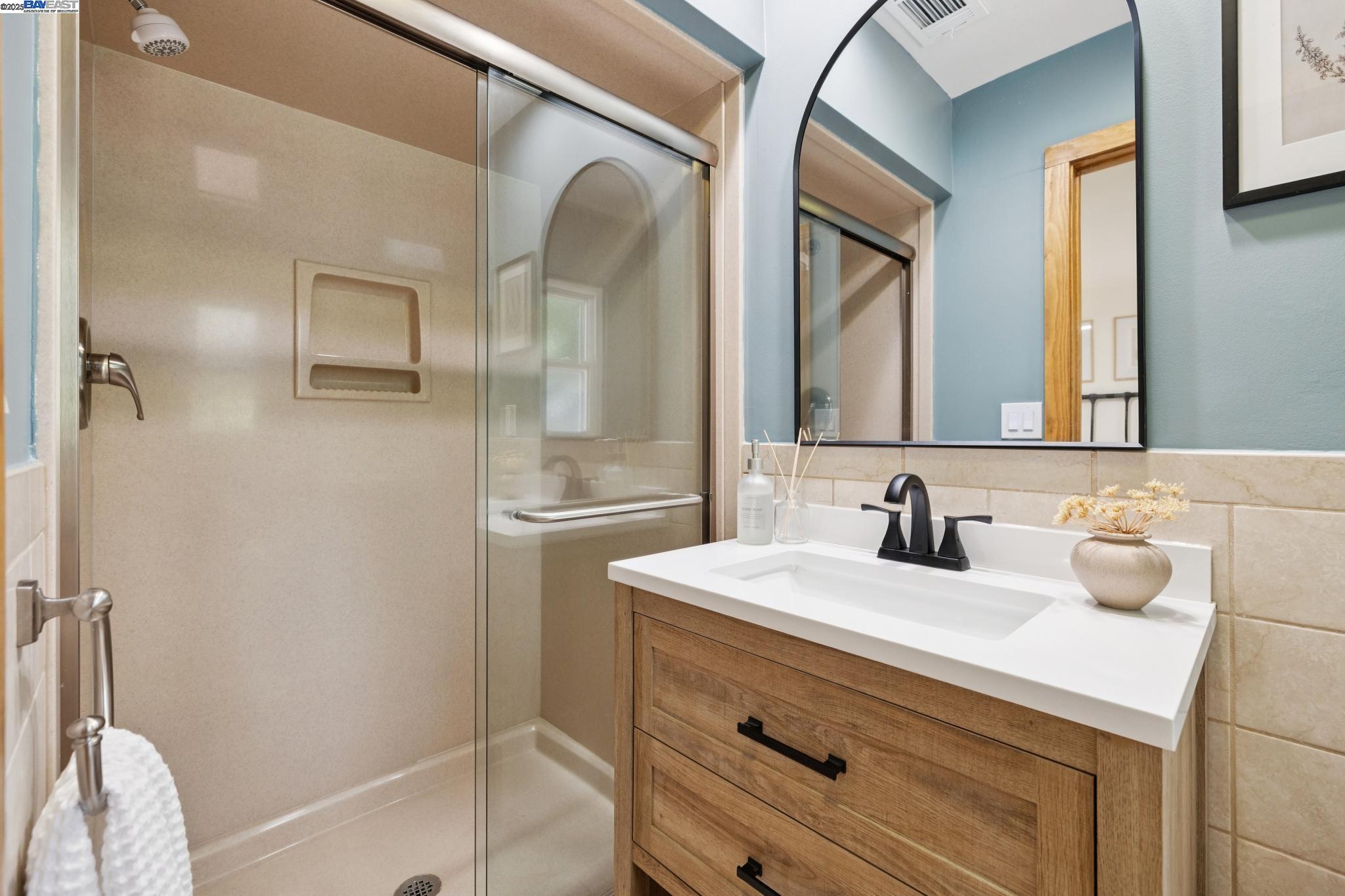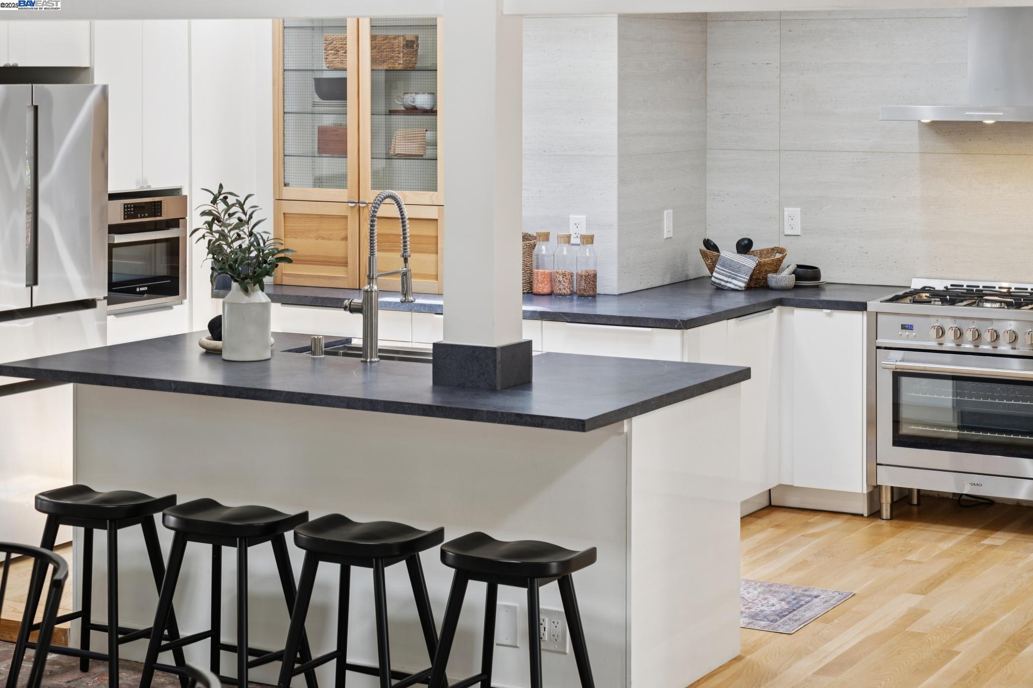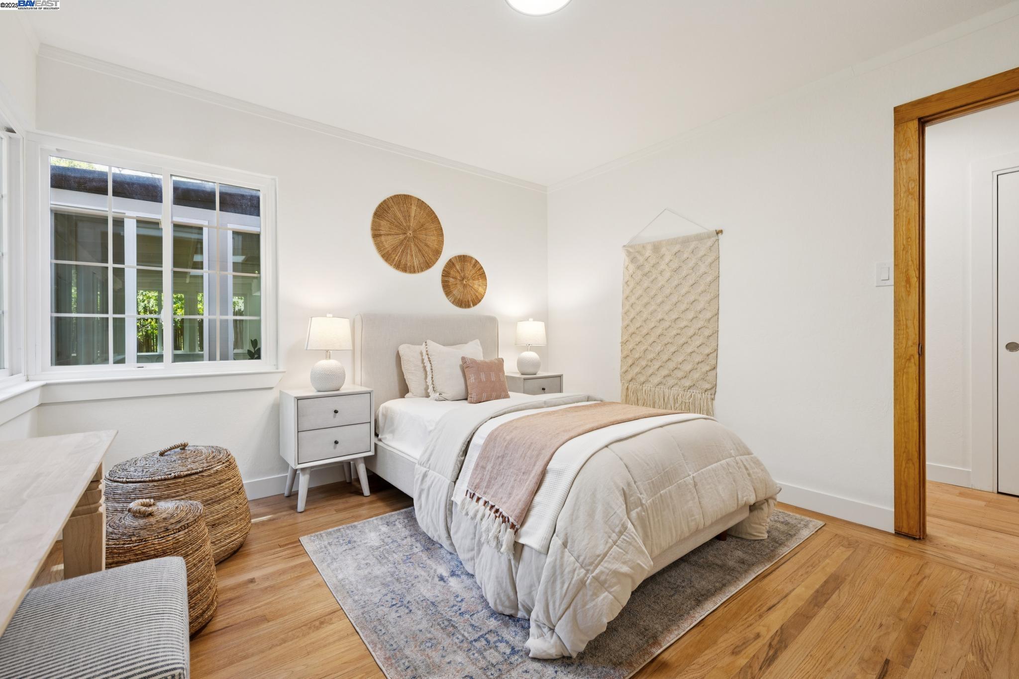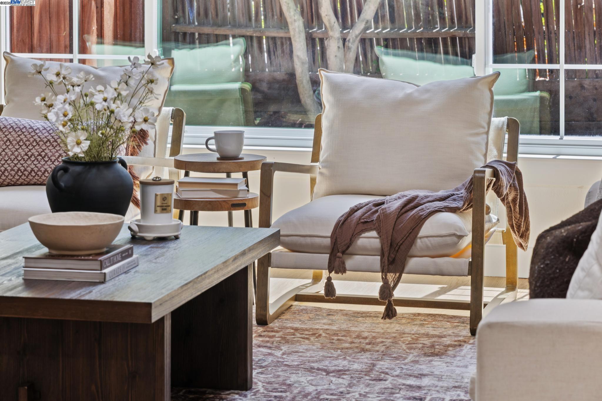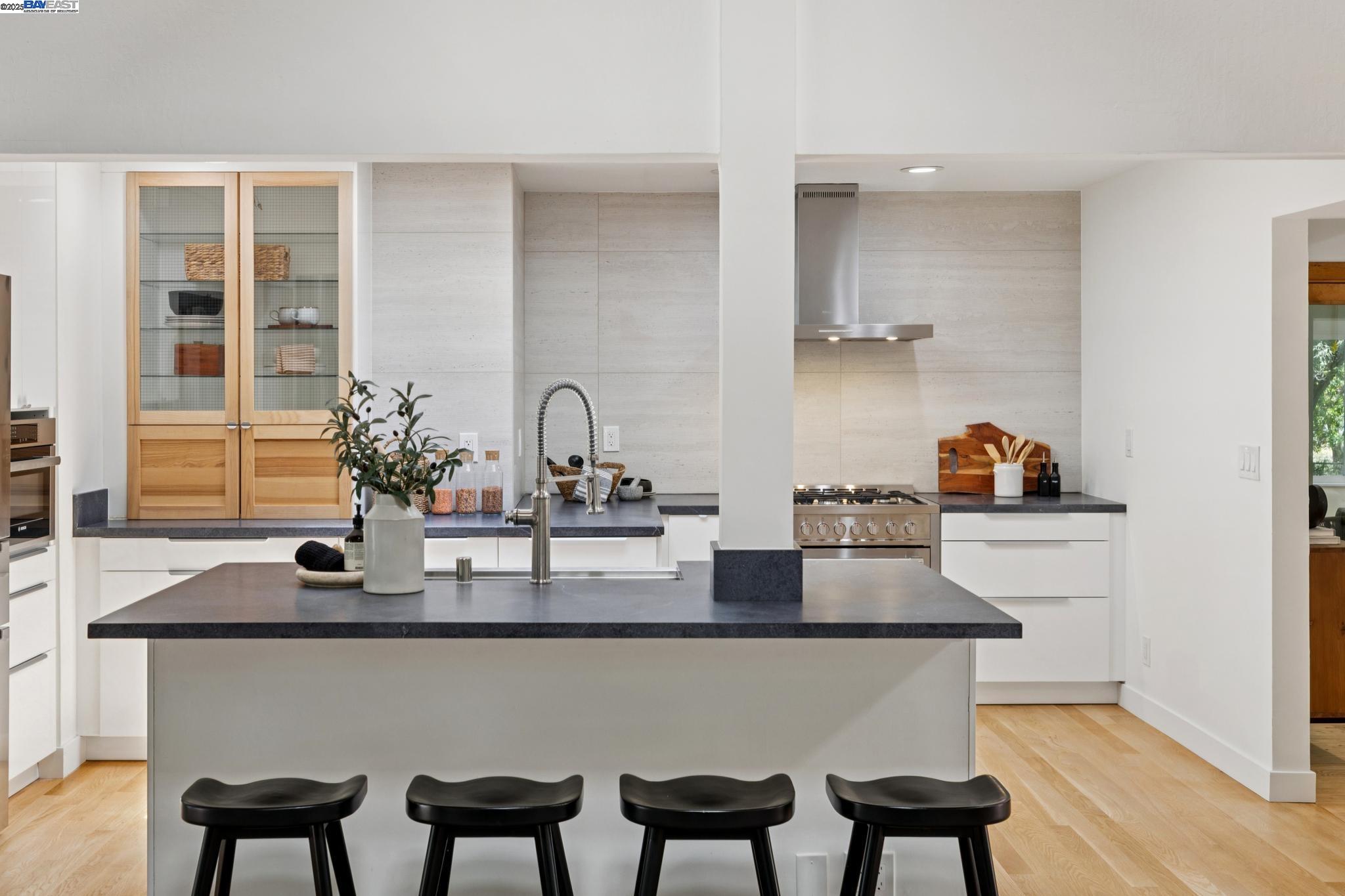 Tucked away on a private cul-de-sac, this beautifully refreshed mid-century gem offers timeless character, modern updates, and extraordinary land. Inside, you'll find a thoughtfully updated kitchen and refreshed bathrooms, along with refinished hardwood floors and fresh interior/exterior paint that enhance the home's clean, classic aesthetic. The regal great room steals the show with vaulted ceilings, exposed beams, and generous natural light--perfect for entertaining. The flexible floor plan includes 4 bedrooms, 2 bathrooms, an office nook, and an enclosed sunroom, offering space for every lifestyle. Step outside to your own private haven: a sun-drenched deck with new handrails, serene backyard, raised garden beds, and a storage shed, all framed by lush natural surroundings. Set on a sprawling 0.77-acre lot, the property features a private bridge over a tranquil creek, leading to an additional carport and second access from Moraga Way. Whether hosting or unwinding, this home offers an ideal indoor-outdoor experience. Additional highlights include a 1-car garage, proximity to top-rated Orinda schools, and a peaceful setting that feels miles away--yet moments from everything.