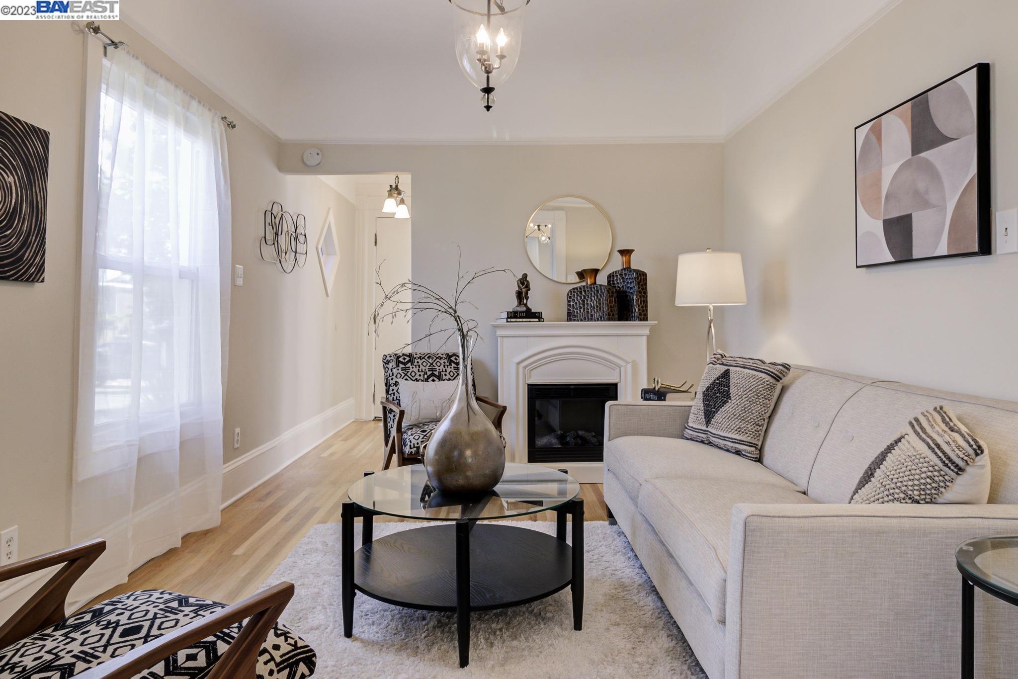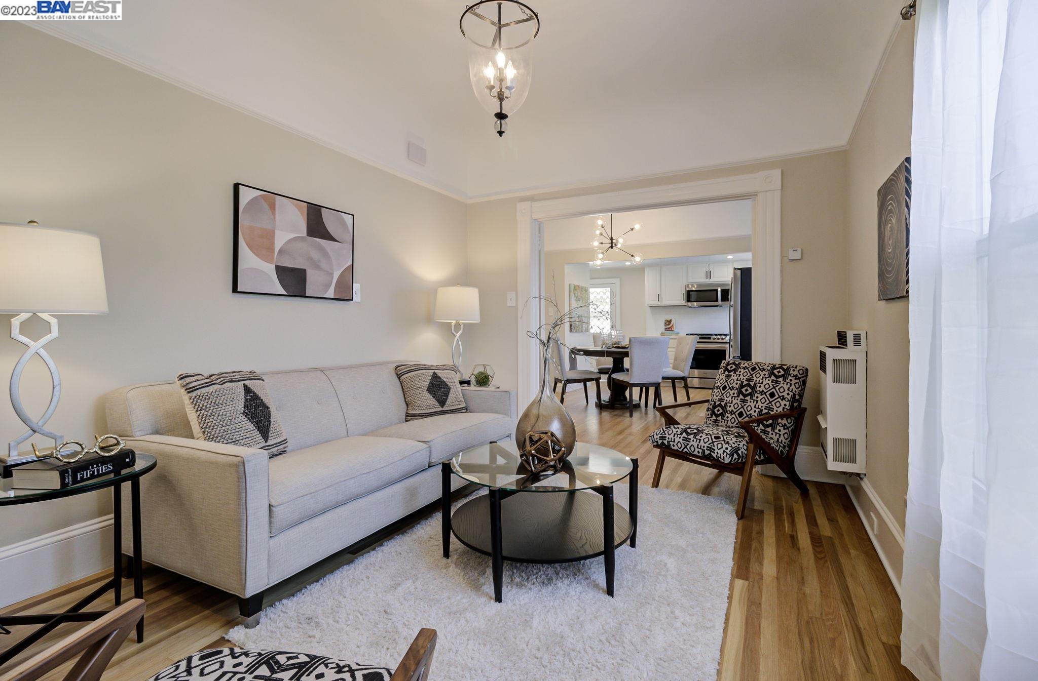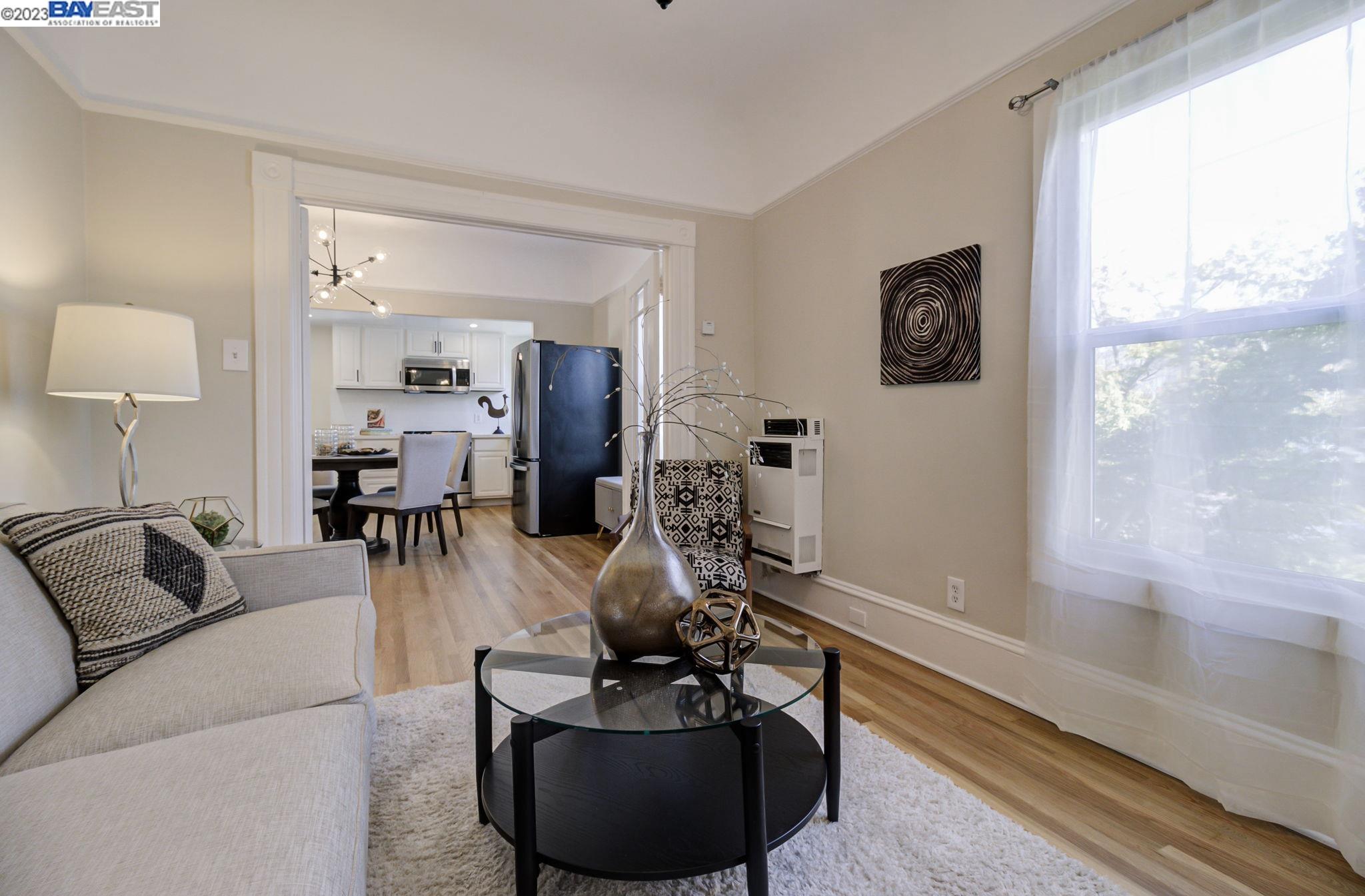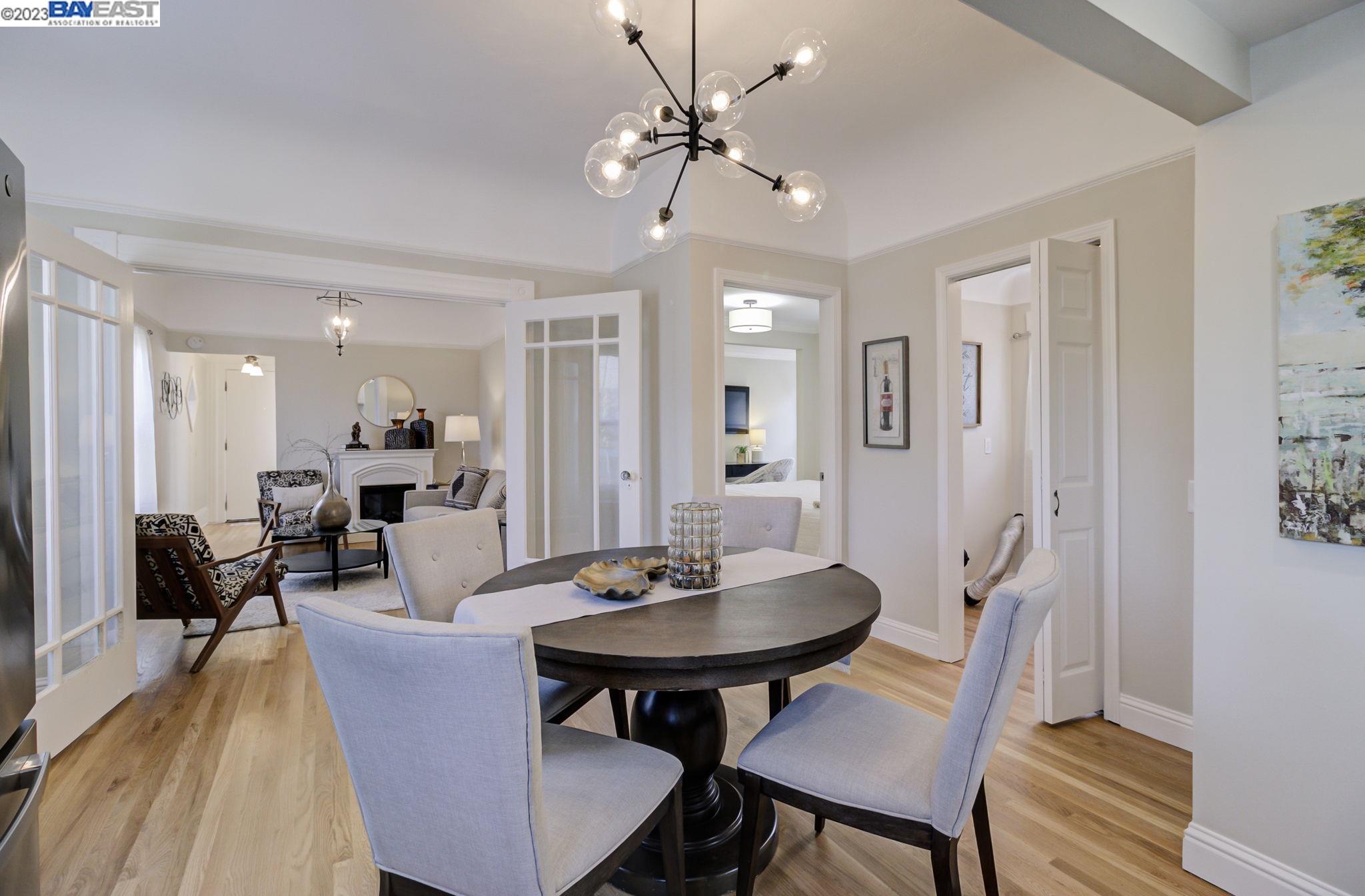 Welcome to this light-filled updated bungalow on a corner lot in Oakland's popular Bushrod Neighborhood. A block from Bushrod Park pickleball and tennis courts.This home has had a major restoration to the kitchens and baths, hardwood floors, fresh paint and additional items to enhance its original 1905 beauty and characteristics such as the tall, coved ceilings, moldings, and original detail. The main level has a large primary bedroom with a remodeled bath, a second bedroom and bath with stall shower, living room with original glass French doors leading to the eat-in kitchen, and attached laundry room. The highly desirable bonus space downstairs features a full bath, kitchenette, built-ins, great storage and private exterior entrance. The rear yard has low-maintenance outdoor space, conversation area and patio for entertaining. A detached garage provides possibilities plus off-street parking. This home is centrally located to Oakland's vibrant Rockridge and Temescal neighborhoods, Berkeley, and Emeryville. Public transport is convenient for Ashby and Rockridge BART stations, bus routes and bike paths, plus near the University of California Berkeley campus, and freeway to San Francisco.