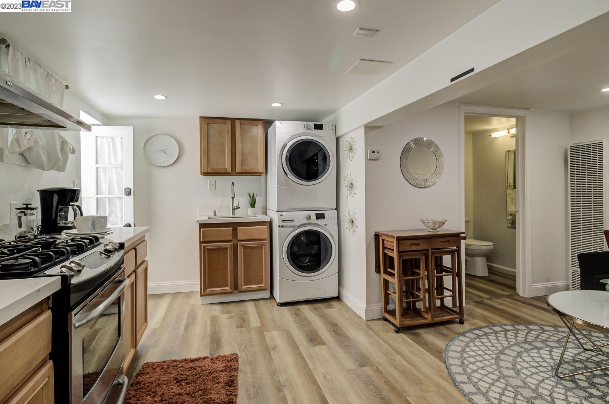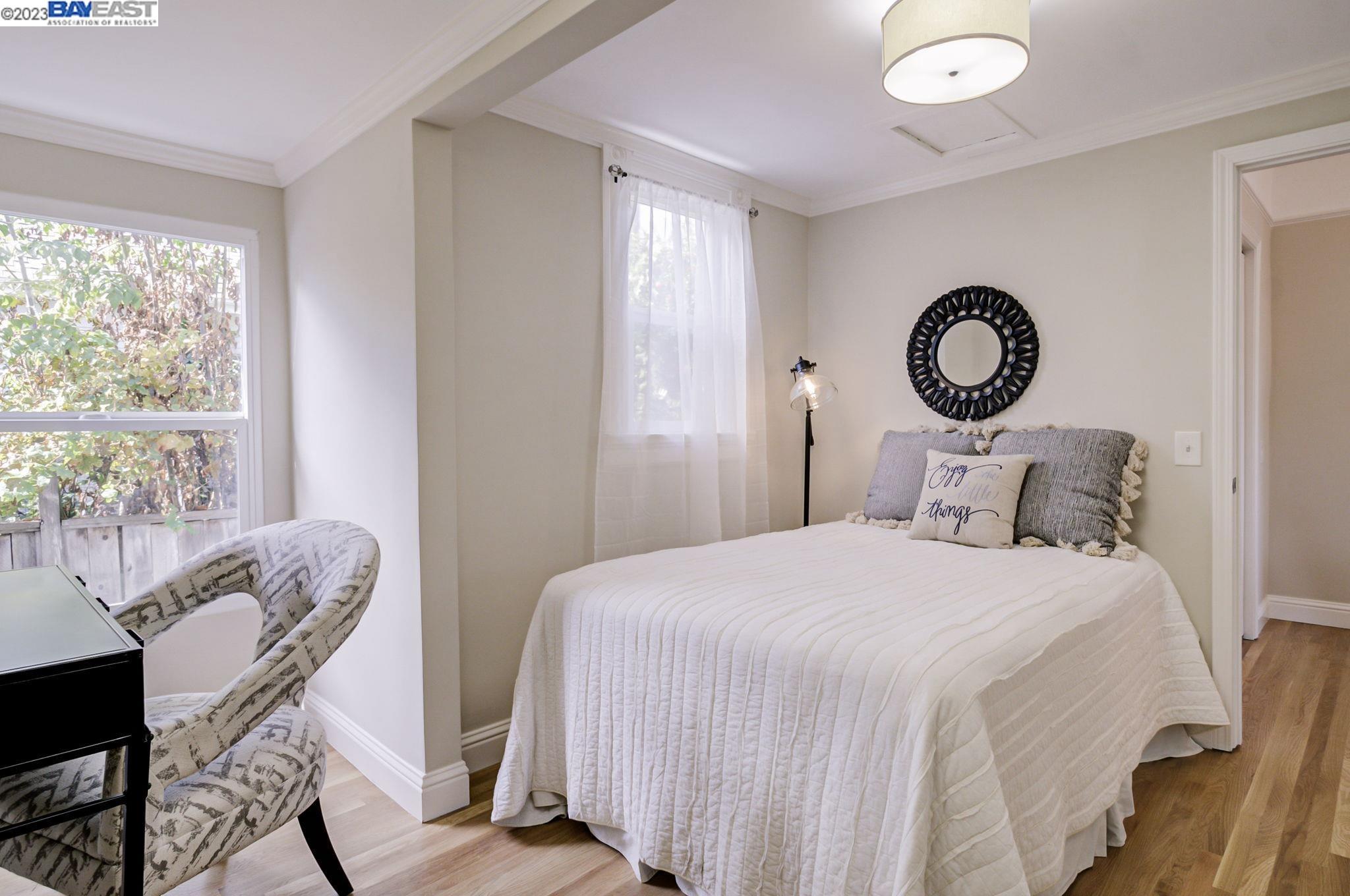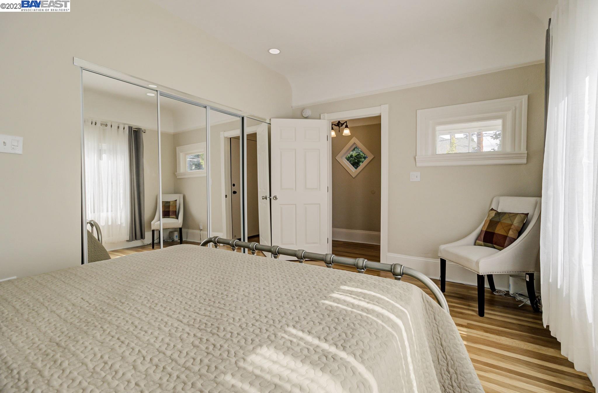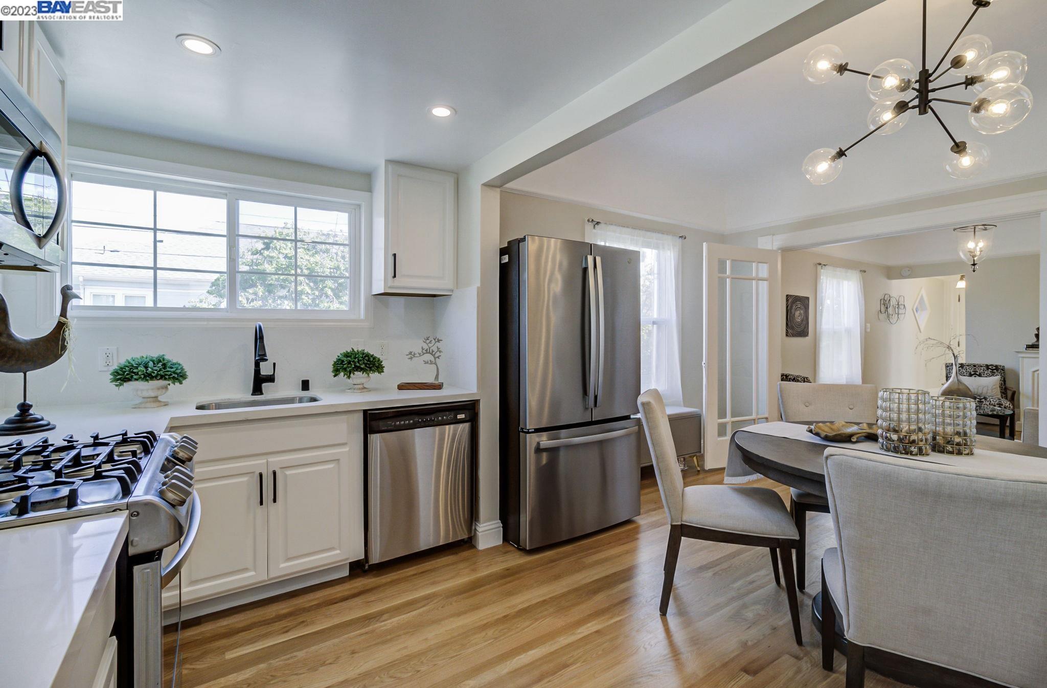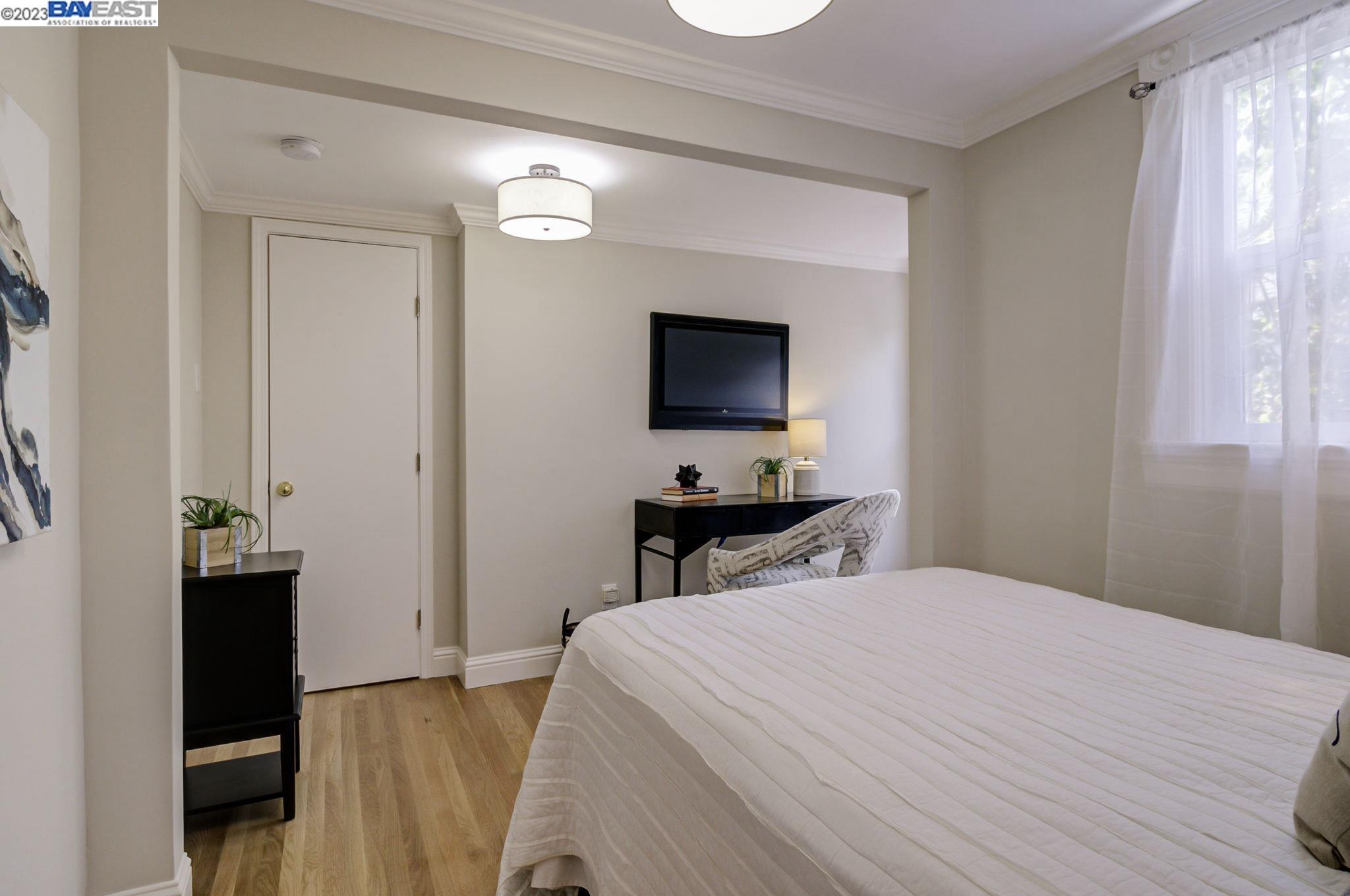 Welcome to this light-filled updated bungalow on a corner lot in Oakland's popular Bushrod Neighborhood. A block from Bushrod Park pickleball and tennis courts.This home has had a major restoration to the kitchens and baths, hardwood floors, fresh paint and additional items to enhance its original 1905 beauty and characteristics such as the tall, coved ceilings, moldings, and original detail. The main level has a large primary bedroom with a remodeled bath, a second bedroom and bath with stall shower, living room with original glass French doors leading to the eat-in kitchen, and attached laundry room. The highly desirable bonus space downstairs features a full bath, kitchenette, built-ins, great storage and private exterior entrance. The rear yard has low-maintenance outdoor space, conversation area and patio for entertaining. A detached garage provides possibilities plus off-street parking. This home is centrally located to Oakland's vibrant Rockridge and Temescal neighborhoods, Berkeley, and Emeryville. Public transport is convenient for Ashby and Rockridge BART stations, bus routes and bike paths, plus near the University of California Berkeley campus, and freeway to San Francisco.