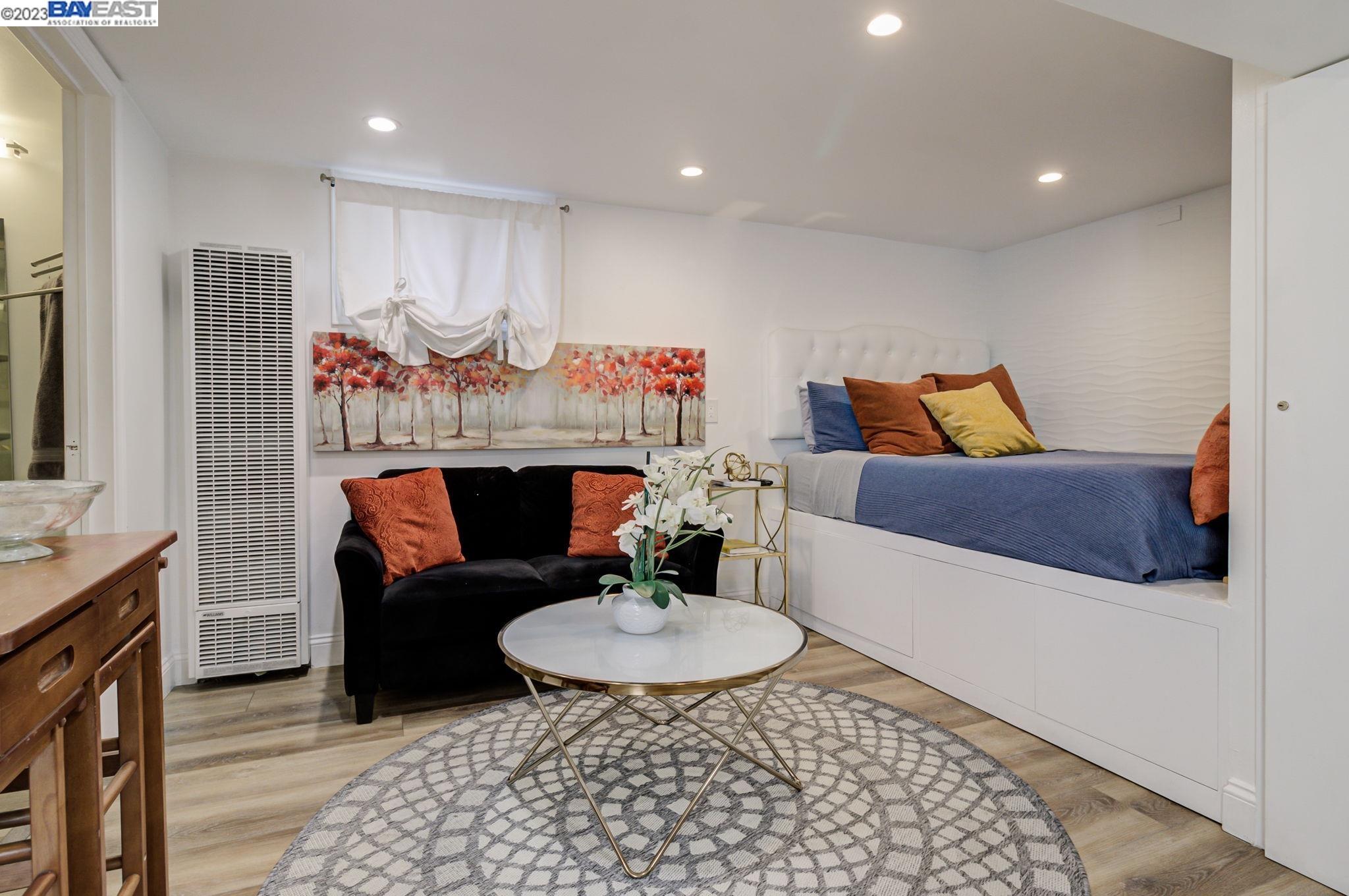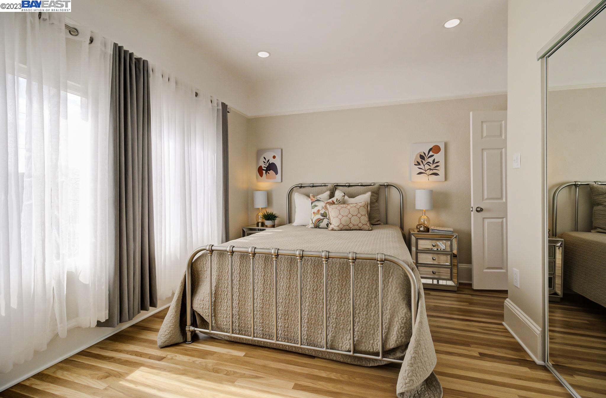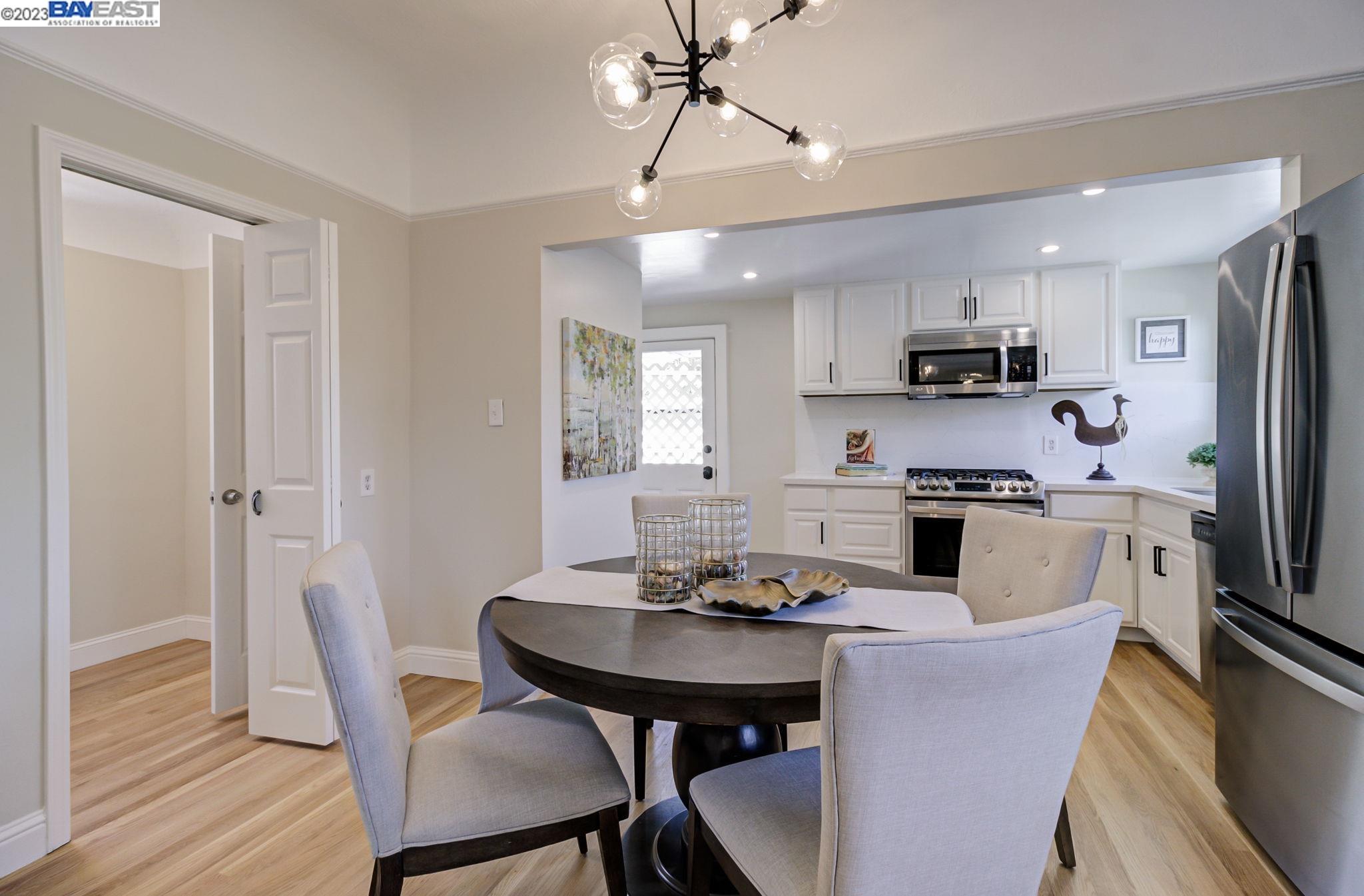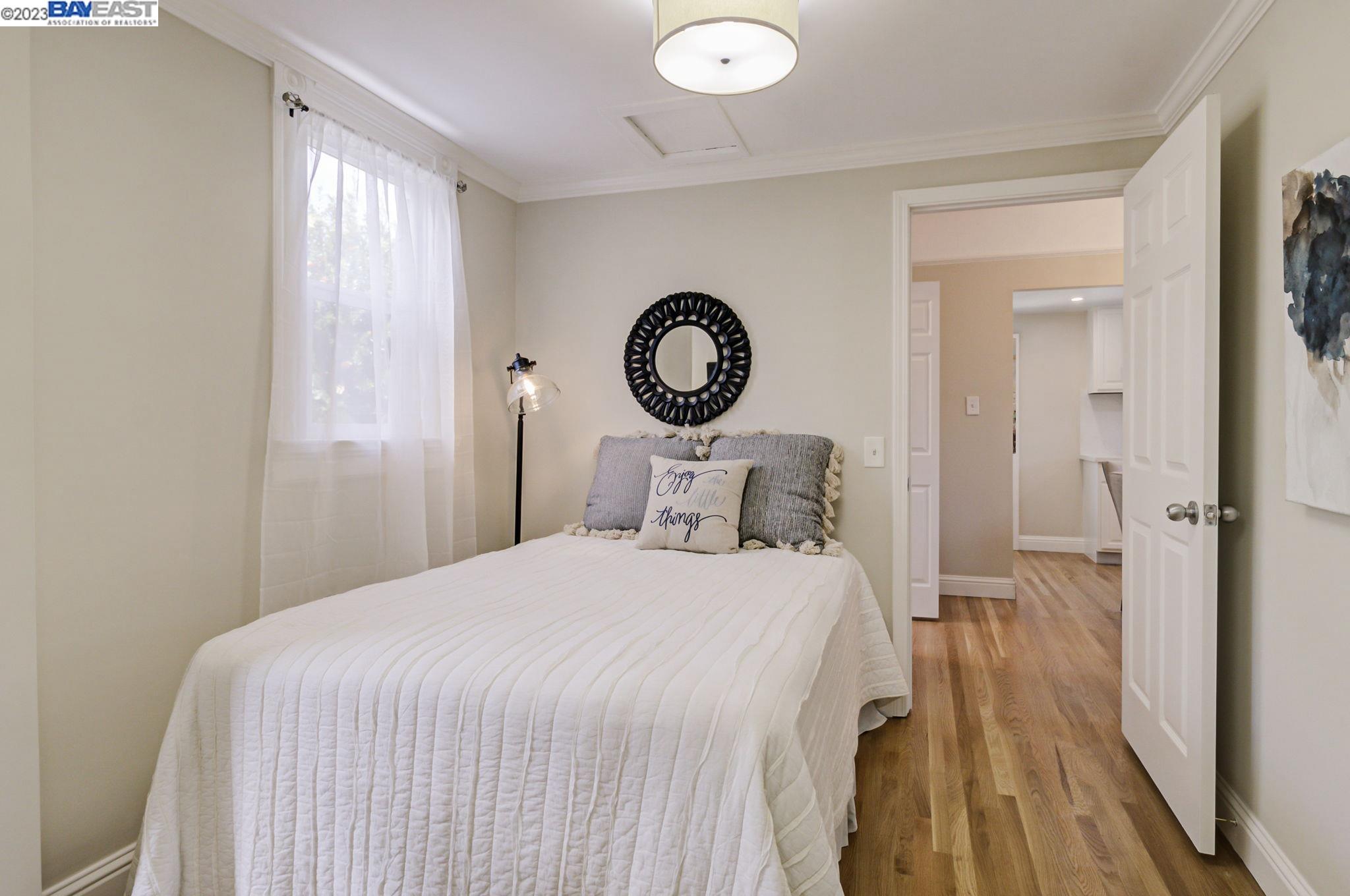 Welcome to this light-filled updated bungalow on a corner lot in Oakland's popular Bushrod Neighborhood. A block from Bushrod Park pickleball and tennis courts.This home has had a major restoration to the kitchens and baths, hardwood floors, fresh paint and additional items to enhance its original 1905 beauty and characteristics such as the tall, coved ceilings, moldings, and original detail. The main level has a large primary bedroom with a remodeled bath, a second bedroom and bath with stall shower, living room with original glass French doors leading to the eat-in kitchen, and attached laundry room. The highly desirable bonus space downstairs features a full bath, kitchenette, built-ins, great storage and private exterior entrance. The rear yard has low-maintenance outdoor space, conversation area and patio for entertaining. A detached garage provides possibilities plus off-street parking. This home is centrally located to Oakland's vibrant Rockridge and Temescal neighborhoods, Berkeley, and Emeryville. Public transport is convenient for Ashby and Rockridge BART stations, bus routes and bike paths, plus near the University of California Berkeley campus, and freeway to San Francisco.
