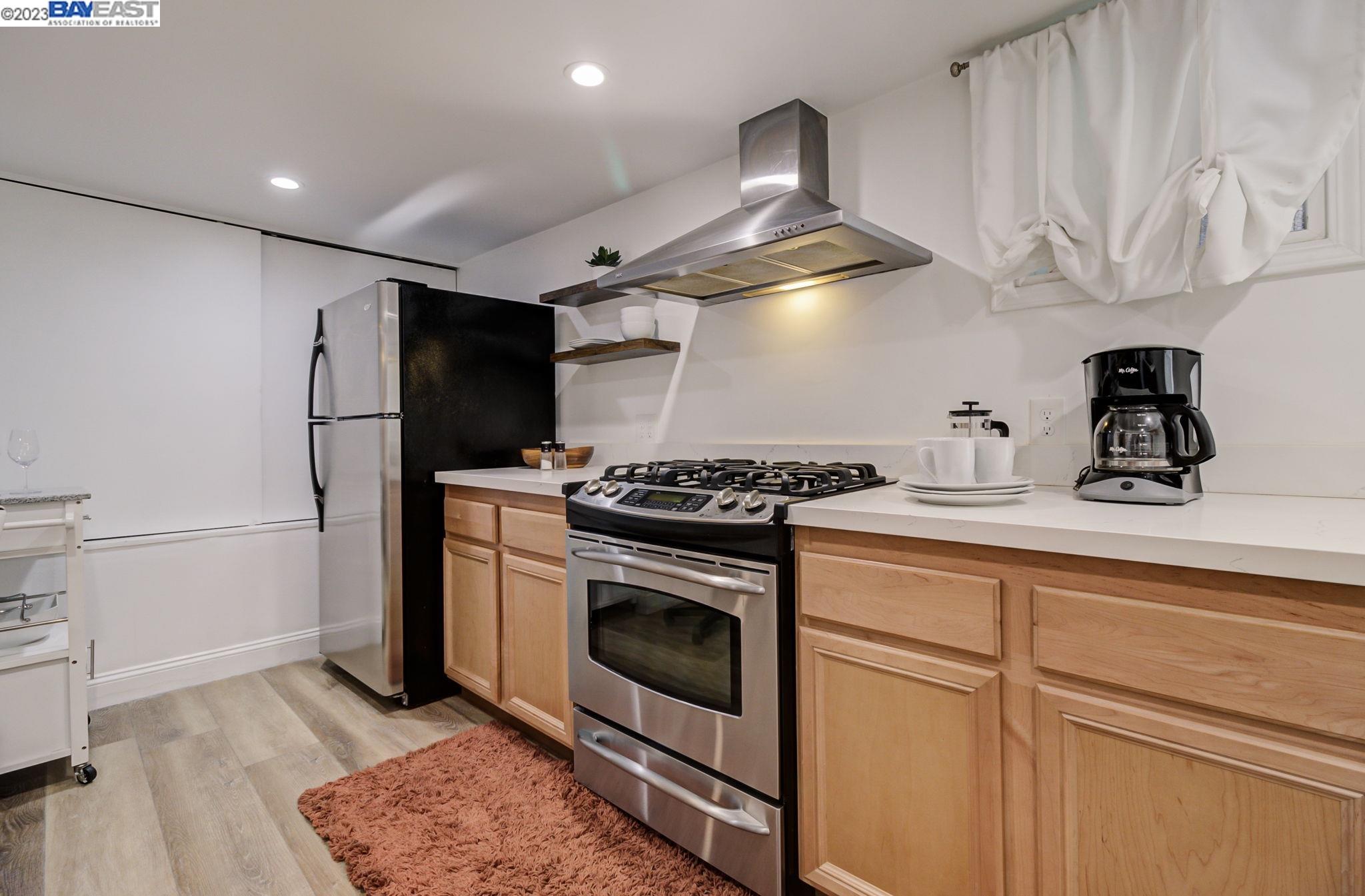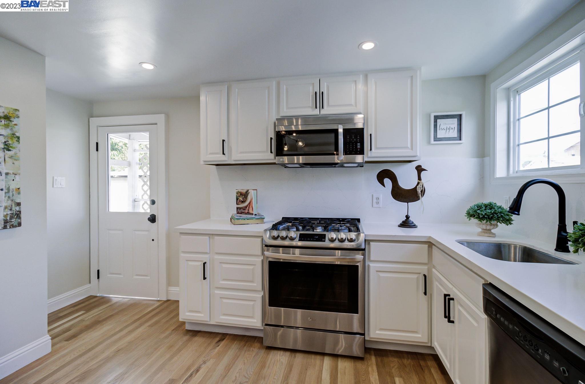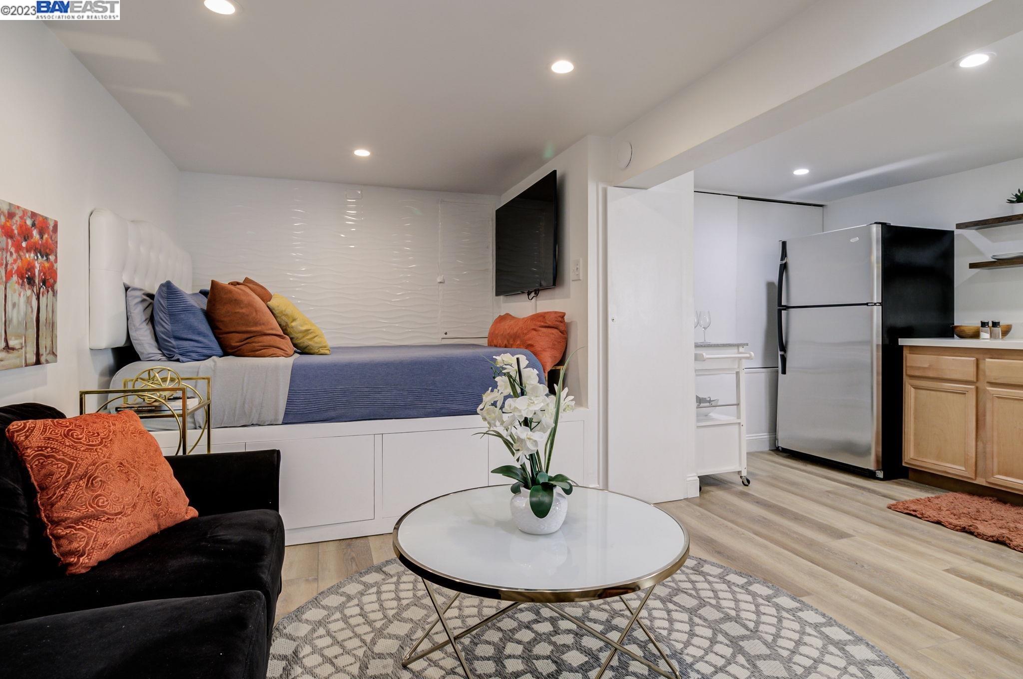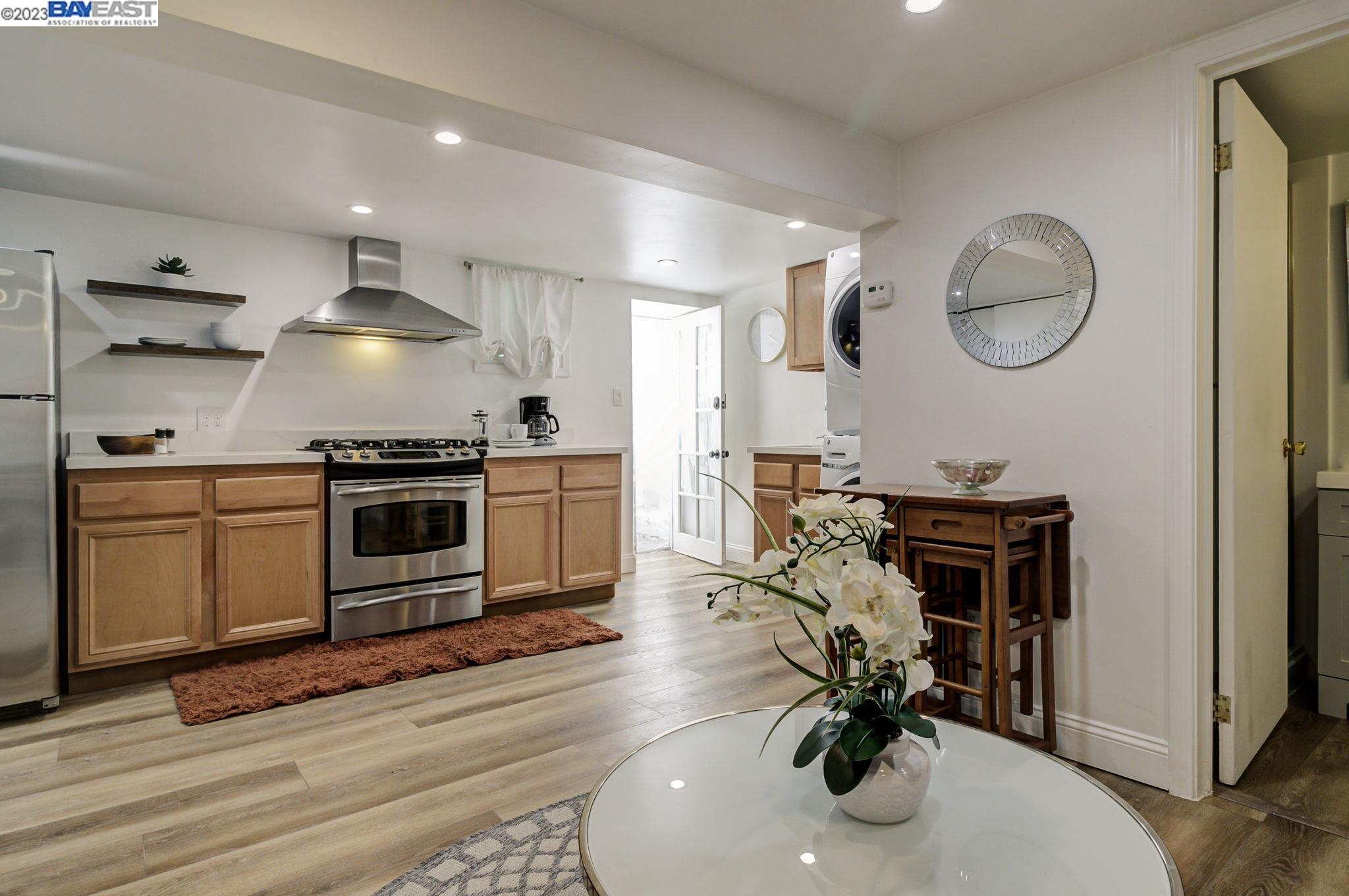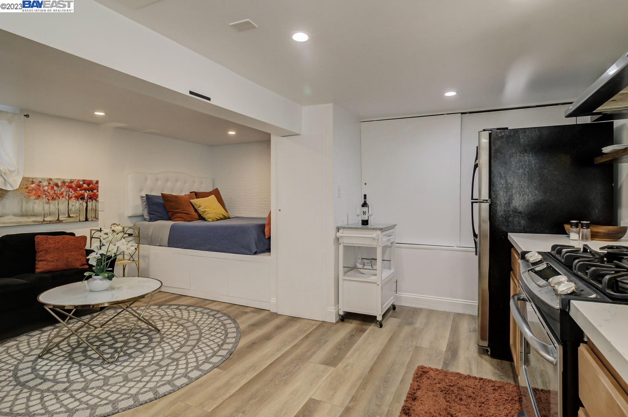 Welcome to this light-filled updated bungalow on a corner lot in Oakland's popular Bushrod Neighborhood. A block from Bushrod Park pickleball and tennis courts.This home has had a major restoration to the kitchens and baths, hardwood floors, fresh paint and additional items to enhance its original 1905 beauty and characteristics such as the tall, coved ceilings, moldings, and original detail. The main level has a large primary bedroom with a remodeled bath, a second bedroom and bath with stall shower, living room with original glass French doors leading to the eat-in kitchen, and attached laundry room. The highly desirable bonus space downstairs features a full bath, kitchenette, built-ins, great storage and private exterior entrance. The rear yard has low-maintenance outdoor space, conversation area and patio for entertaining. A detached garage provides possibilities plus off-street parking. This home is centrally located to Oakland's vibrant Rockridge and Temescal neighborhoods, Berkeley, and Emeryville. Public transport is convenient for Ashby and Rockridge BART stations, bus routes and bike paths, plus near the University of California Berkeley campus, and freeway to San Francisco.
